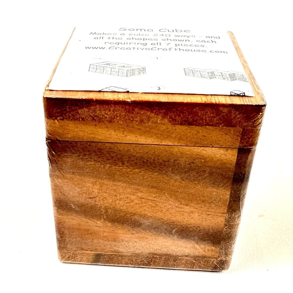 Soma Cube wooden 3D puzzle by Creative Crafthouse. This puzzle is factory sealed and unused, still in its original packaging and includes the original instruction sheet. The Soma Cube is a classic brain teaser specifically created for people with Alzheimer’s. It’s made up of 7 wooden pieces that assemble into a cube and many other shapes. Level is easy. • Brand: Creative Crafthouse • Puzzle type: Soma Cube (3D wooden brain teaser) • Size (assembled): approx. 2.5in • Condition: New / sealed in package • Includes: original directions Great as a gift, desk puzzle, or for anyone who enjoys logic and spatial reasoning challenges. Ships carefully packaged. Feel free to message with any questions!