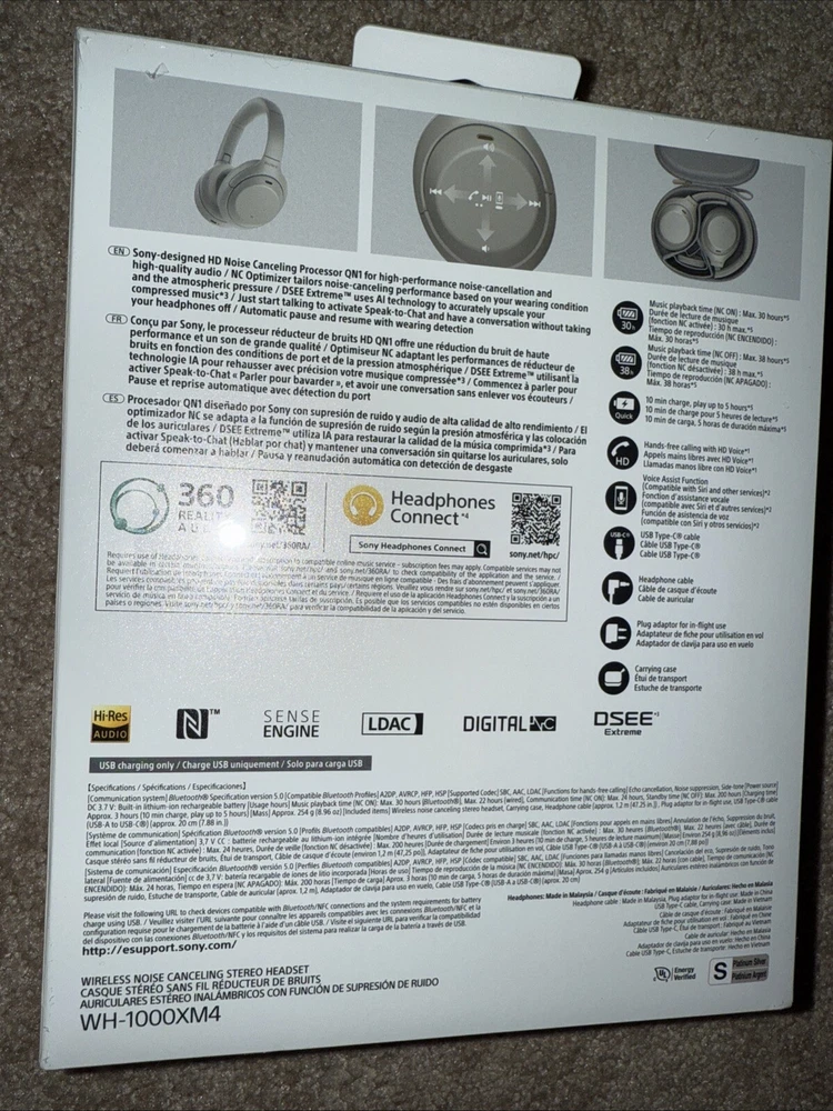 Immerse yourself in high-quality audio with these Sony WH-1000XM4 Wireless Premium Noise Canceling Over-Ear Headphones in Silver. These headphones feature advanced noise-cancellation technology, making them perfect for commuters and travelers alike. With easy Bluetooth connectivity, you can seamlessly switch between music and phone calls on the go. The headphones are also equipped with ambient sound mode, allowing you to stay aware of your surroundings while enjoying your tunes. When you're on the move, these foldable headphones are easy to store and take with you wherever you go. The built-in microphone lets you take calls without any interruptions, and the 1.2m cable length gives you plenty of room to work with.