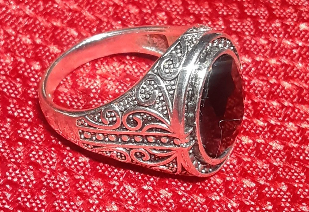 The "New Stainless Steel Black Onyx Royal Court Ring" is a striking piece of jewelry designed for those with a regal and sophisticated style. The ring features a bold black onyx stone set in a durable stainless steel band, giving it a sleek and modern look. With a ring size of 9, this piece is perfect for adding a touch of elegance to any outfit, making it a versatile accessory for any occasion.