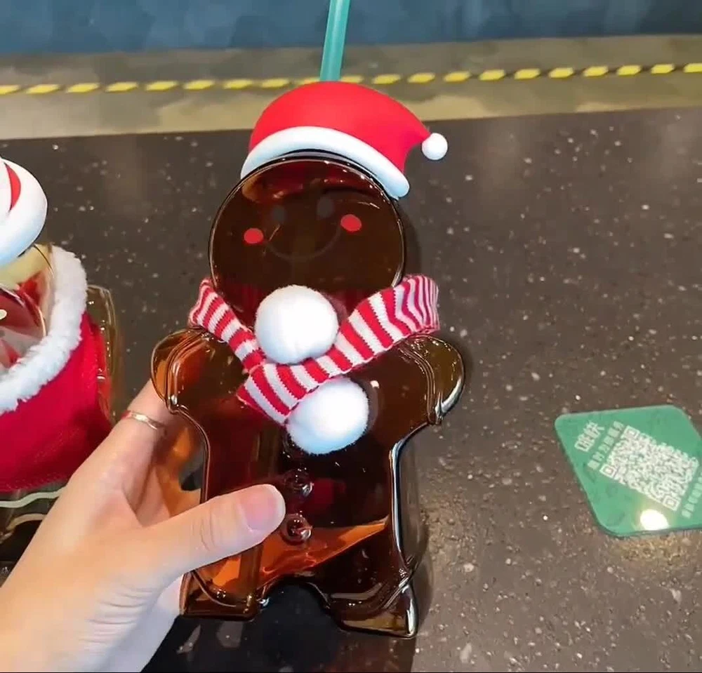 New Starbucks Christmas Gift Gingerbread Man Shaped Glass Straw Cup Tumbler Condition: Authentic and new Released: Starbucks China in 2021 Capacity: 730ml Material: Food grade glass Note: Co ld Water Cup( Do not use hot water ). Hand wash only. DO not microwave. DO not dishwasher .