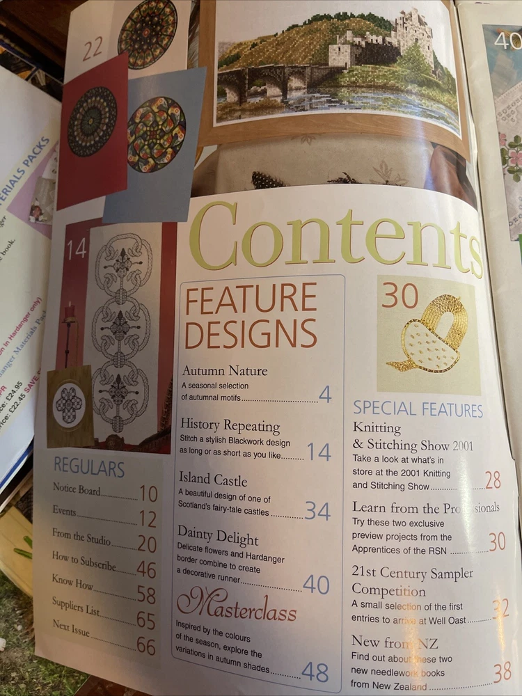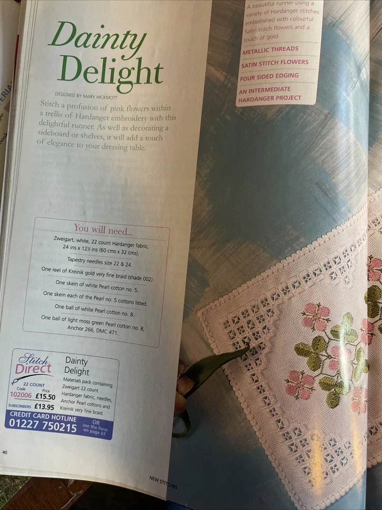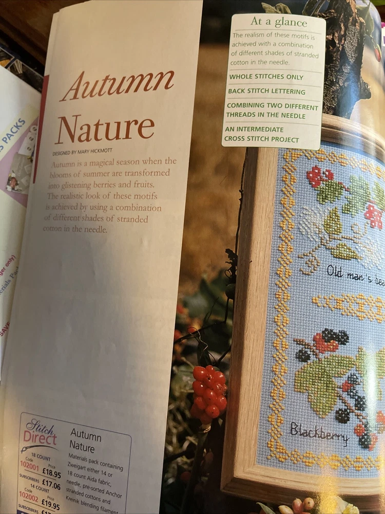 Mary Hickmott’s New Stitcheds October 2001 Magazine Issue NO. 102 See pictures for projects included Beautiful. Great projects!