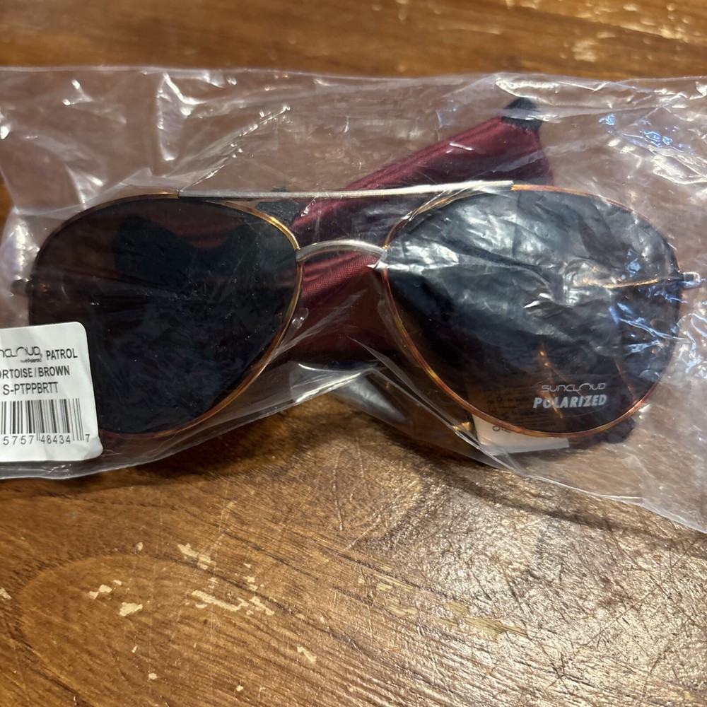 The Suncloud Patrol sunglasses in Tortoise Gold feature a classic Aviator style with polarized brown lenses for enhanced visibility while driving. The frame is made of metal, giving it a durable construction suitable for both men and women. Ideal for everyday wear and outdoor activities, these sunglasses offer both style and functionality. International charges are the buyer’s responsibility. No international returns.