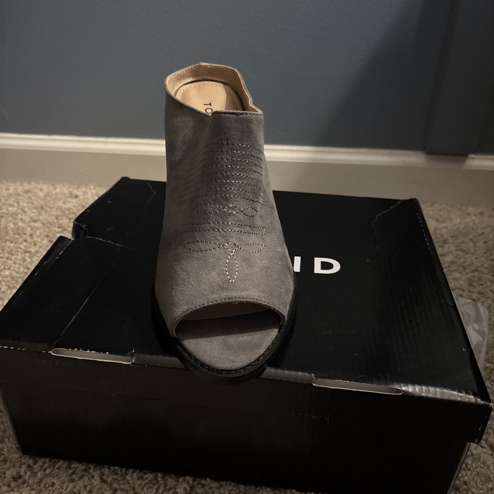 New TORRID 9W Grey Faux Suede Chunky Heel Open Toe Mule Western Women