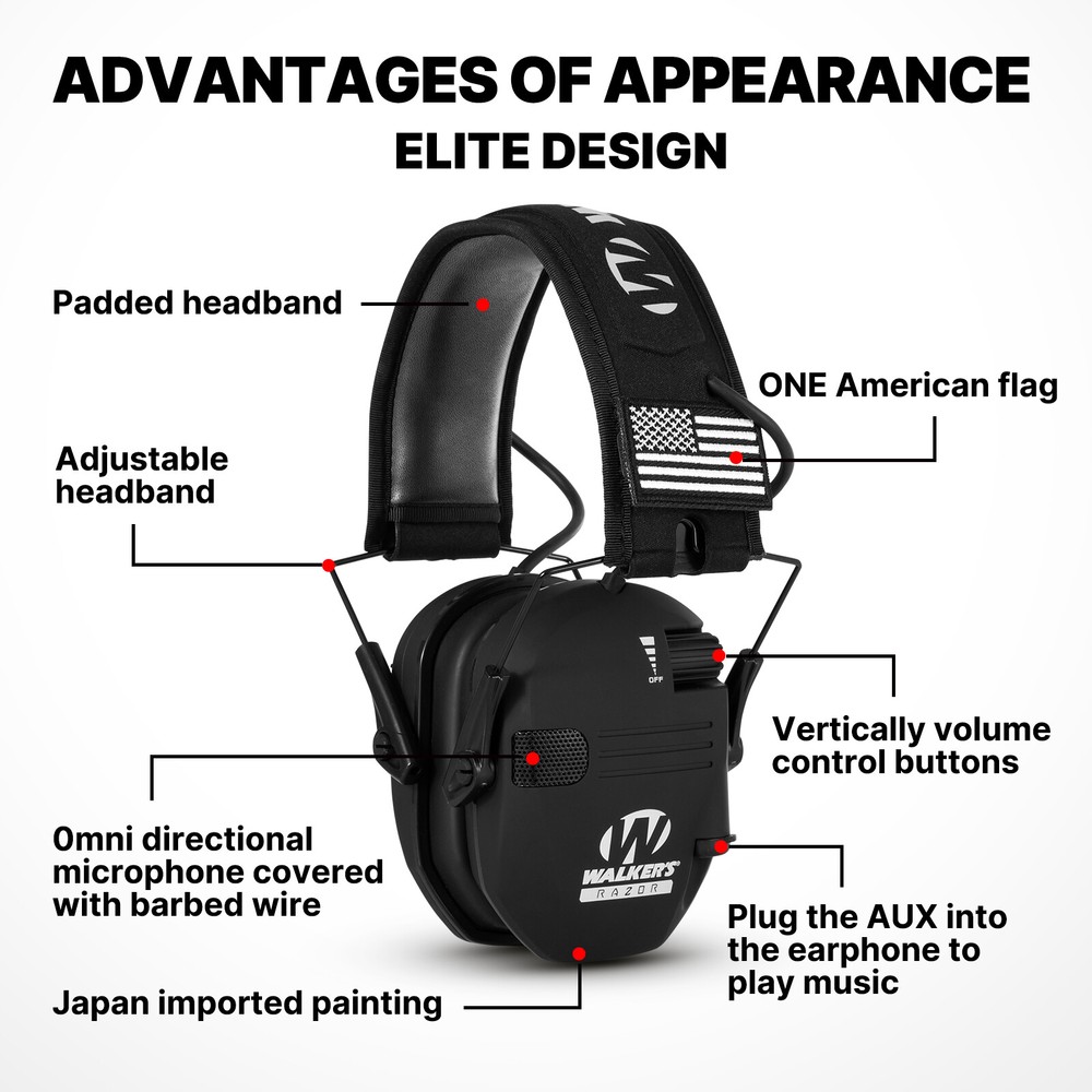 Product Description If you have any questions, please contact customer service first, do not open disputes easily, thank you! Features: Built-in directional microphones amplify range commands and other Ambient sounds to a safe 82 dB, providing more natural listening and Enhanced communication. Features low profile earcups for firearm stock clearance; adjustable Headband for secure fit; compact folding design for convenient storage. It offers the ultimate in safety and ear protection. The safety is Delivered through distortion-free amplification (up to a safe 82 dB) of Important low level sounds like range commands and conversation. The Protection comes from instant blocking of any noise above 82 dB. Designed for use at the range or in the field, this earmuff also Features low profile earcups that won't interfere with when aiming. The headband is padded for comfort, and telescopes to ensure a secure, custom fit. An external audio jack lets the earmuff do double duty as stereo Headphones when connected to an MP3 player or other audio source. Descriptions: Comfortable and adjustable headband. Noise reduction, protecting your hearing. This allows you to hear important commands on the range and crucial environment sounds when hunting. Specifications: Material: ABS Folding size: 124*101*96mm Color: Green/Black/Sandy yellow(optional) Package includes: 1*Headset 1*Charging Cable 1*User Manual Payment Shipping Contact Us We accept paypal payments and all payments authorized by eBay. 1.We ship to your eBay or Paypal address. Please make sure your eBay and Paypal address is correct before you pay. 2.Items will be shipped within 1-2 business day when we received payment. 3.Delivery time depends on destination and other factors We strive for 100% customer satisfaction! Postive Feedback is very important to us. If you have any questions, please feel free to contact us via "Ask seller a question" , we will reply your email within 24 Working hours. Payment We accept paypal payments and all payments authorized by eBay. Shipping 1.We ship to your eBay or Paypal address. Please make sure your eBay and Paypal address is correct before you pay. 2.Items will be shipped within 1-2 business day when we received payment. 3.Delivery time depends on destination and other factors Contact Us We strive for 100% customer satisfaction! Postive Feedback is very important to us. If you have any questions, please feel free to contact us via "Ask seller a question" , we will reply your email within 24 Working hours. powered by