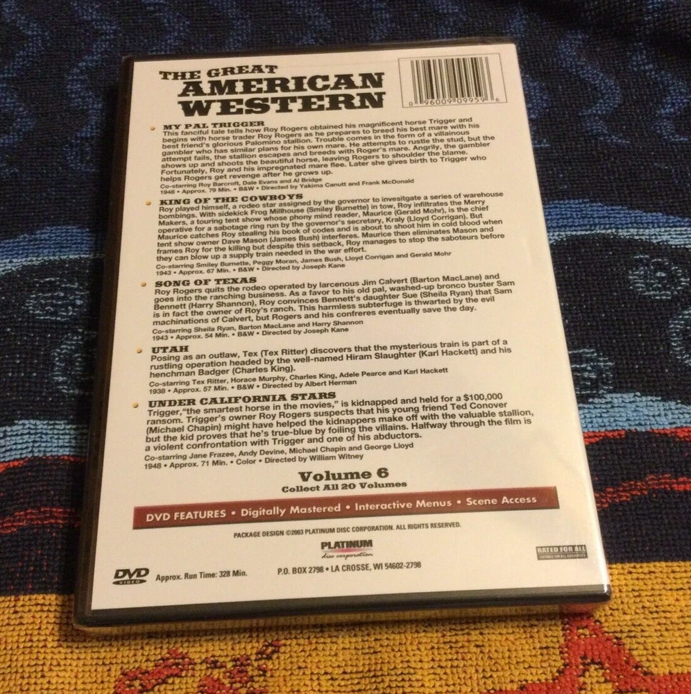 New! The Great American Western - Roy Rogers (DVD, 2003, Five Films on One Disc) Please read the full description carefully before bidding and/or purchasing any products. Condition-Brand new and factory sealed. Shrink wrap, cellophane and/or packaging may consist of writings, scratches, scuff marks, creases, wrinkles, rips, tears, folds, minor staining, previous stickers, or labels applied by the retail store, manufacture, and/or previous owner. All sales are final. Sold AS-IS condition. No refunds and/or returns accepted. Please purchase at your own risk. I accept all reasonable offers. Just a quick reminder! Use your Best Offers wisely: For most categories, you can make up to 5 offers. Expired, rejected, and retracted offers all count toward this limit. This is a binding contract. Immediate Payment required. If no communication about payment is made within 2 days, item will be relisted, and you will be reported to eBay as unpaid item. Paypal may run your debit card/credit card as a cash advance/money transfer causing a service charge. Please talk to Paypal and/or your credit card/debit card company because I do not issue refunds whatsoever. You need to resolve the issue with Paypal and/or your credit card/debit card company. You are responsible for reading the full item listing before making a bid or commitment to buy. You enter into a legally binding contract to purchase an item when you commit to buy an item, your offer for an item is accepted, or if you have the winning bid (or your bid is otherwise accepted). Good luck to the highest bidder. No reserve price. I will not retract and/or cancel your bid. There are no excuses. Once the transaction ends, it is final. All sales are final. No refunds and/or returns accepted. Sold AS-IS condition. All sales are final. Purchase at your own risk. Shipping details: Merchandise purchased on Friday after 12pm will be shipped Monday morning excluding Holidays. For international shipping, I will be using eBay's Global Shipping Program. Due to the outbreak of this contagious virus, shipping maybe delayed. Shipped with USPS and/or FEDEX. I will not be held accountable if the item gets stolen off your porch. Please go to USPS and/or FEDEX website to get your latest update. Thank you!