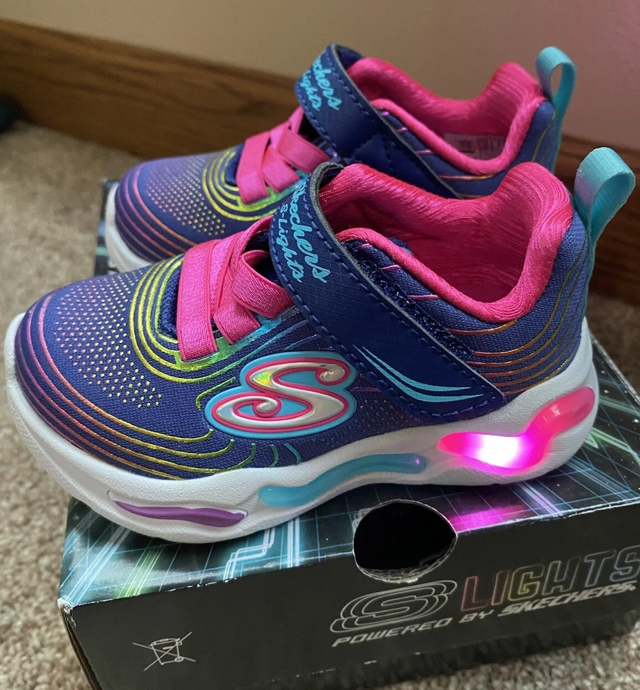 New Toddler/Baby GIRLS SKECHERS SIZE 5 SHOES LIGHT UP WAVY BEAMS. Condition is New with box. Shipped with USPS Ground Advantage.