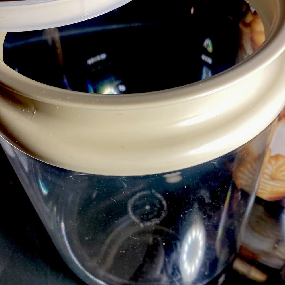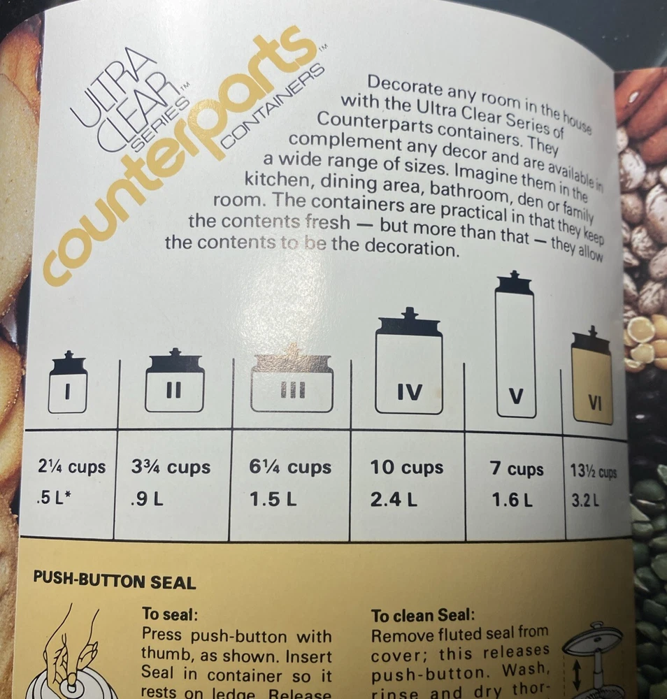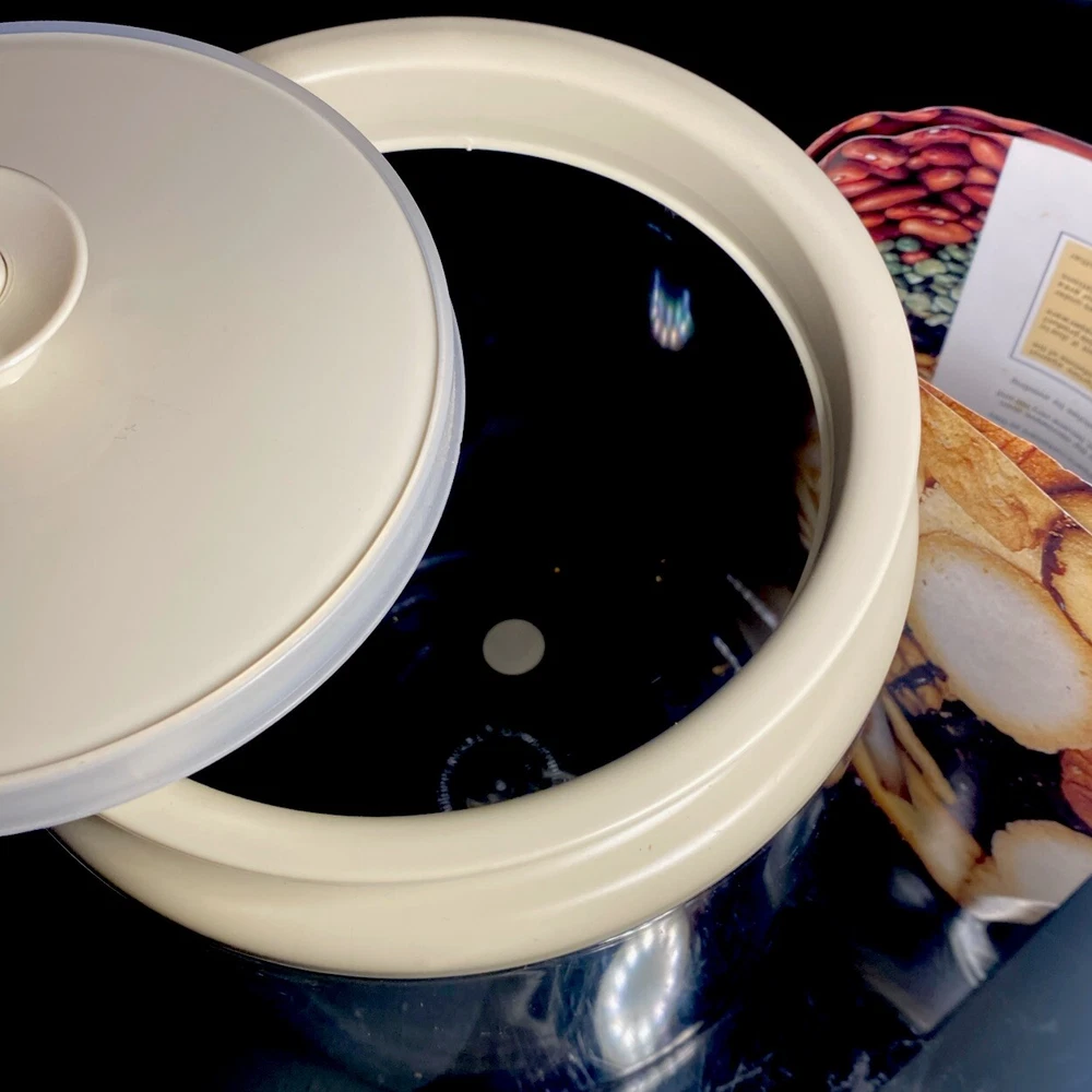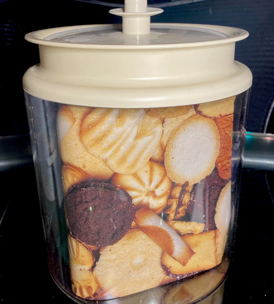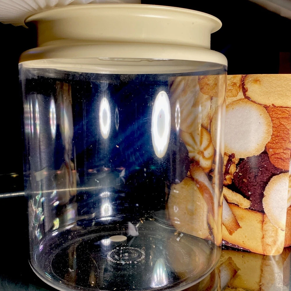 Number of Items in Set:1Item Length:6”Color:BeigeOriginal/Licensed Reproduction:OriginalPattern:SolidLid Type:Push Button SealFeatures:With LidModified Item:NoTheme:Food/KitchenMaterial:Acrylic, PlasticBrand:TupperwareCountry/Region of Manufacture:United StatesNumber of Slots:1Department:AdultManufacturer Warranty:LifetimeFeatured Refinements:Vintage TupperwareSize:LargeType:Storage ContainerAntique:NoShape:CylinderMPN:1484Item Width:6”Number of Tiers:1Item Height:8”Vintage:YesStyle:Vintage/RetroHandmade:NoSet Includes:LidNumber of Compartments:1