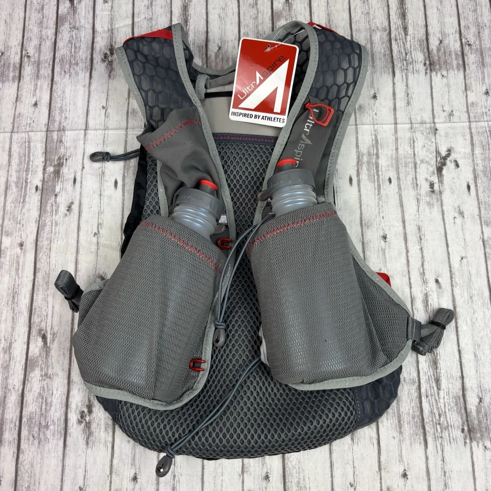 The Ultraspire Velocity Lightweight Hydration Pack is a sleek and functional option for outdoor enthusiasts. This pack features a black color with gray accents, making it stylish for both hiking and running. The Ultraspire brand is known for producing high-quality hydration systems, ensuring that you stay hydrated on the go. The one-size-fits-all design makes it versatile for a wide range of users, while the pack's lightweight construction makes it comfortable to carry during long outdoor adventures.