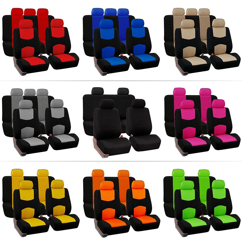 Product Description: Item Type: Interior Accessories & Seat Covers Item Name: Universal Car Seat Covers Compatible Vehicles : Cover Fits all Standard Car Seats Placement on Vehicle: Front and Rear Material :Polyester Color: Red/Blue/Beige/Gray/Black/Rose Red /Yellow/Orange/Green Suite Number: 9 Pieces Set Zipped Contains: 5 seat covers: 28 * 26cm /11.02*10.24 inches(Approx.) 2 seats front seat: 118 * 56cm/46.45*22.05 inches(Approx.) 1 triple backrest: 135 * 76cm/53.15*29.92 inches(Approx.) 1 triple seat: 135 * 55cm/53.15*21.65 inches(Approx.) Package included:1 x 9 Pieces Set Note: 1.Transition: 1cm=10mm=0.39inch 2.Please allow 1-2cm error due to manual measurement. pls make sure you do not mind before you bid. 3.Due to the difference between different monitors, the picture may not reflect the actual color of the item. Thank you!