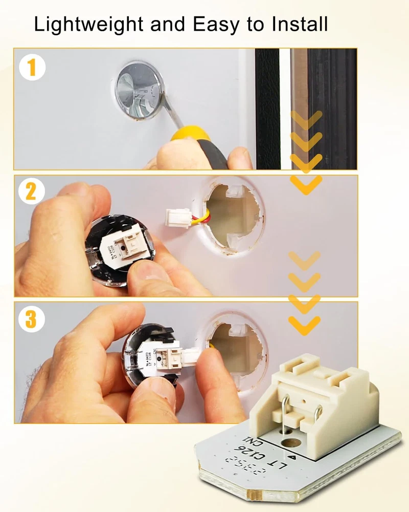 Compatible with Refrigerator Models: Fit for GE Refrigerator GFE26GGKEBB GFE26GGKEWW GFE26GGKFBB GFE26GGKFWW GFE26GMKCES GFE26GMKDES GFE26GMKEES GFE26GMKFES GNE29GGKCWW GNE29GGKDBB GNE29GGKDWW GNE29GGKEBB GNE29GGKEWW GNE29GGKFBB GNE29GGK FWW GNE29GMKCES GNE29GMKDES GNE29GMKEES GNE29GSKCSS GNE29GSKDSS GNE29GSKESS GNE29GSKFSS GFE26GSKGSS, please refer to the details page for specific models Bright and Comfortable: LED light panels provide clear and bright lighting effects, effectively illuminating the entire interior space of the refrigerator, making it easier for you to find the items you need and providing a comfortable visual experience Safe and Reliable: The LED light panel adopts low-voltage DC power supply, which is not easy to generate heat and is safer and more reliable to use, helping to maintain stable temperature inside the refrigerator and ensuring food safety Space Saving: LED light panels are usually smaller and more compact than traditional light bulbs, which can save space inside the refrigerator and make the available space larger Direct Replacement Installation: In case of power outage, use a screwdriver to remove the lampshade and directly replace the old LED light. The lamp panel has a long service life, which not only improves efficiency but also saves maintenance costs