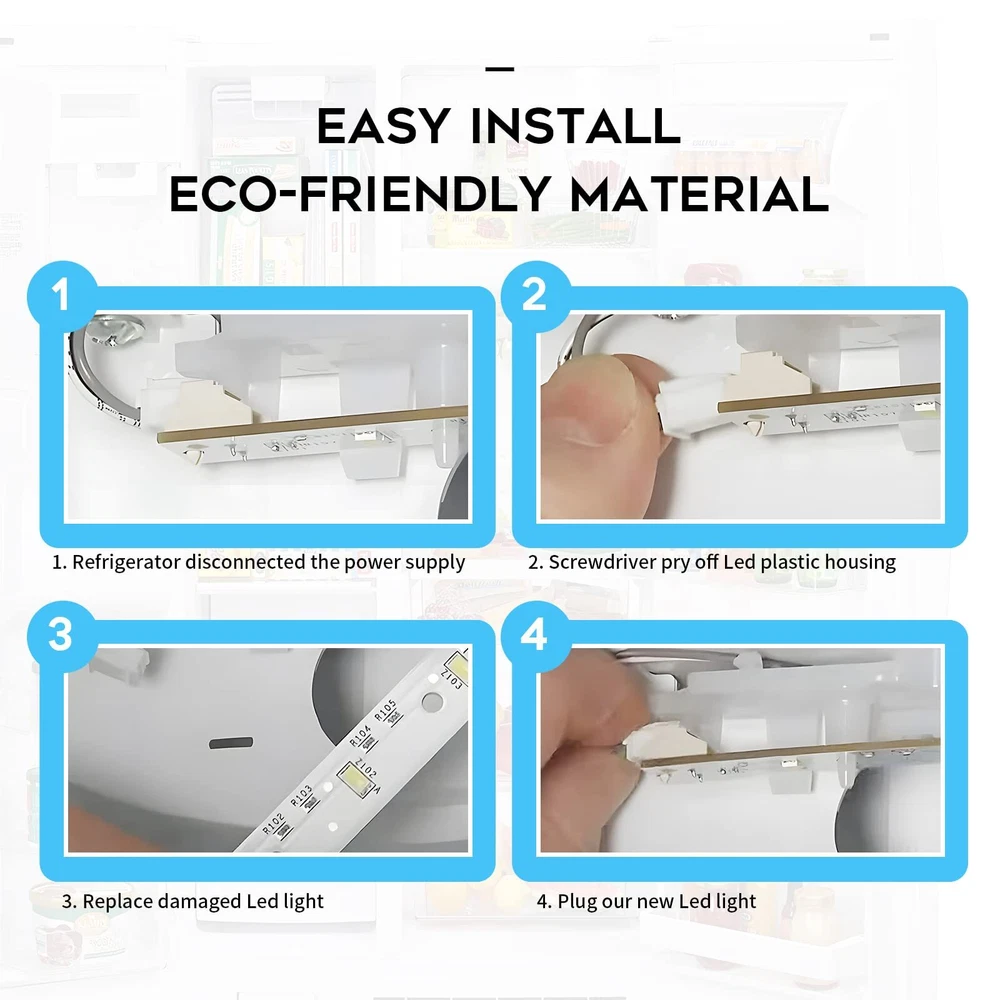 【New Version 4 Bright LED Chips GE Refrigerator Light 】WR55X26671 LED Light Bulb Refrigerators light bulb replacement energy saving and bright. Mainly used for repairing GE freezer refrigerator light bulb. Up to 60% energy saving, less heat output and extremely long life. Save $30 on your electricity bill per year, no longer need to replace frequently. 【Pack of 2 PCS for Money Saving 】GE Freezer Light Bulb Replacement Model: GSE25GGHJCCC GSE25GGHJCWW GSE25GSHJCSS GSE25HEMJHDS GSS25GMHJCES DSE25JGHGCBB DSE25JGHGCWW DSE25JMHGCES PSE25KBLJHTS PSE25KGHGHBB PSE25KGHGHWW PSE25KSHGHSS PSS28KSHGCSS PZS22MMKEHES PZS22MMKGHES PZS22MSKEHSS PZS22MSKGHSS GSS25GSHJCSS 【Compatible for GE Model Refrigerators 】WR55X26671 LED Light part is compatible with models including: 4468532 AP6035586 PS11767930 EAP11767930 CZS22MSKEHSS DSE25JGHECBB DSE25JGHECWW DSE25JMHECES DSE25JSHECSS PSE25KGHEHBB PSE25KGHEHWW PSE25KSHEHSS PSS28KSHECSS GSE25HGHJHBB GSE25HGHJHWW GSE25HMHJHES GSE25HSHJHSS CZS22MSKGHSS DSE25JBLJCTS DSE25JSHGCSS GSE23GGKJCBB GSE23GGKJCCC GSE23GGKJCWW GSE23GSKJCSS GSE25HBLJHTS GSS23GGKJCBB GSS23GGKJCWW 【Super Bright 7500K Daylight white Led Bulb】GZS22DGJNFBB GSS25GMHNCES GSE23GSKNCSS GSS25LSLPCSS GSE25GGHNCBB GSS23GGKNCBB GSE25GGHNCWW GSS25IGNBHWW GZS22IYNPHFS GSS25GGHNCWW GZS22IYNBHFS GSS25LSLNCSS GSS23GSKPCSS GSS25GMHPCES GSS25IBNBHTS XSS25GGHNCWW GSS25GGHPCBB CZS22MP2NBS1 GSE23GGKPCWW GSE23GSKPCSS