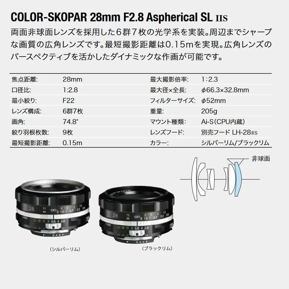 New VOIGTLANDER COLOR-SKOPAR 28mm f2.8 SL IIS Nikon AI-S Lens (BLACK RIM) free shipping for Japan post EMS Brand new, factory packaged Voigtlander lens Model: COLOR-SKOPAR 28mm f2.8 SL IIS Aspherical Color: Black Rim Mount: Nikon F Focus: Manual