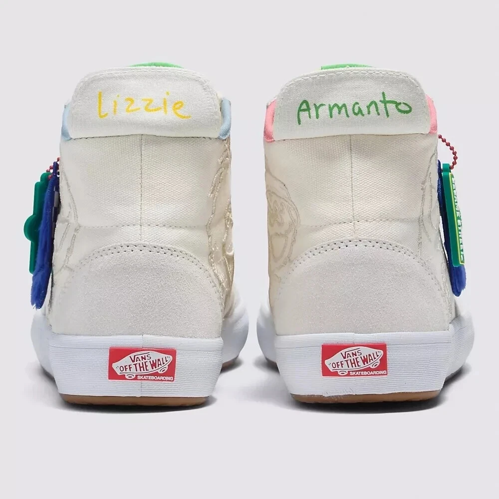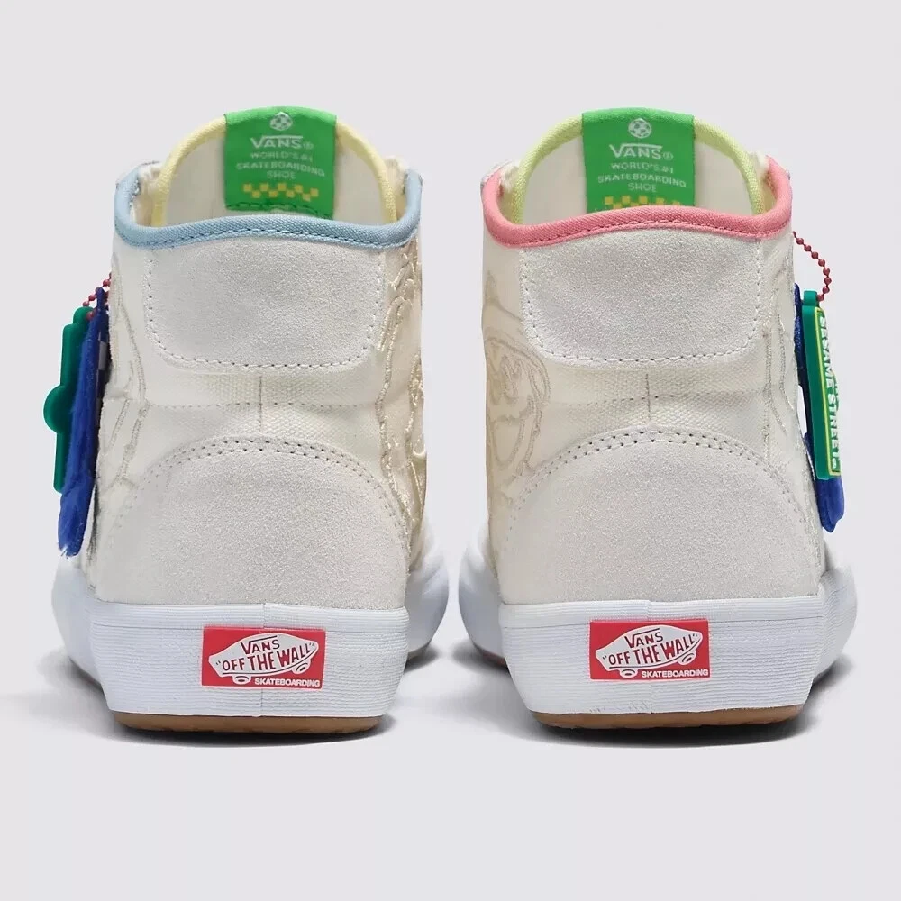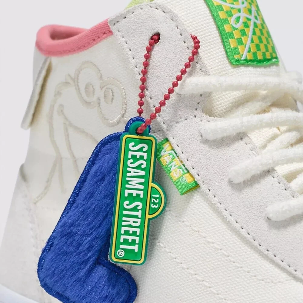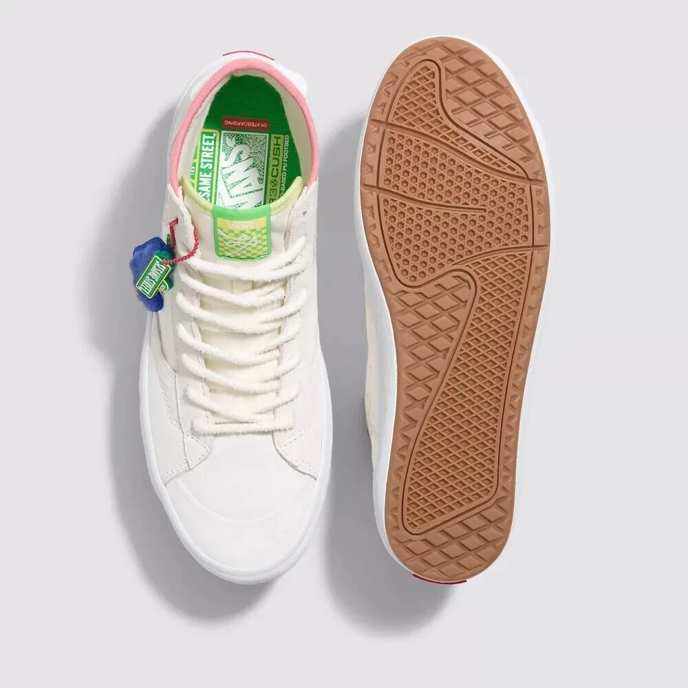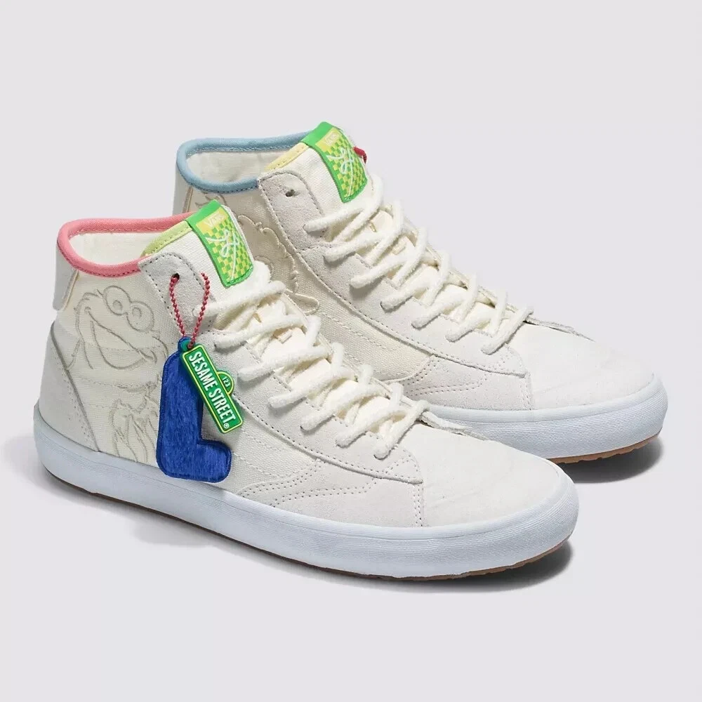Elevate your sneaker game with the latest Vans X Sesame Street The Lizzie White/Multi sneakers. These limited-edition kicks are a must-have for fans and fashion-forward individuals alike. Crafted with premium white suede uppers and featuring the iconic Sesame Street graphics, they're a playful nod to the beloved characters while maintaining a sleek, street-ready appeal.The high-top design and standard shoe width ensure a comfortable fit for all-day wear, while the durable construction is built for skateboarding enthusiasts. With the unique style code VN0A4BX1448, these size 9.5 athletic sneakers are a standout piece from the 2023 VANS Sk8-Hi product line, combining both style and functionality for the modern man.