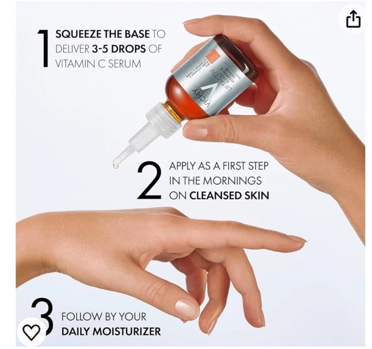 Vichy LiftActiv Vitamin C Brightening Serum for Face With 15% Pure Vitamin C NEW. New in Original Box Product Size 10 ml / .37 ounces About this item Description Vitamin C for face with hyaluronic acid to address dullness, dryness, fine lines, and uneven skin tone. Dark spot corrector and anti wrinkle serum with antioxidants. Benefits Skin brightening serum to even skin tone and texture and reduce fine lines in 10 days. Fragrance free. Suggested Use Use in the AM, squeeze applicator at base to place 4-5 drops onto cleansed skin. Use before an SPF & other serums. Vichy LiftActiv Vitamin C Serum, Brightening and Anti Aging Serum for Face with 15% Pure Vitamin C, Skin Firming and Antioxidant Facial Serum for Brightness and Moisturizing Ingredients Aqua/Water/Eau, Ascorbic Acid, Alcohol Denat., Dipropylene Glycol, Glycerin, Laureth-23, Neohesperidin Dihydrochalcone, Sodium Hydroxide, Tocopherol, Hydrolyzed Hyaluronic Acid, Pinus Pinaster Bark/Bud Extract (F.I.L. D208549/1). Clean Home Non Smoking No Pets SewroomCleardrawer 240413