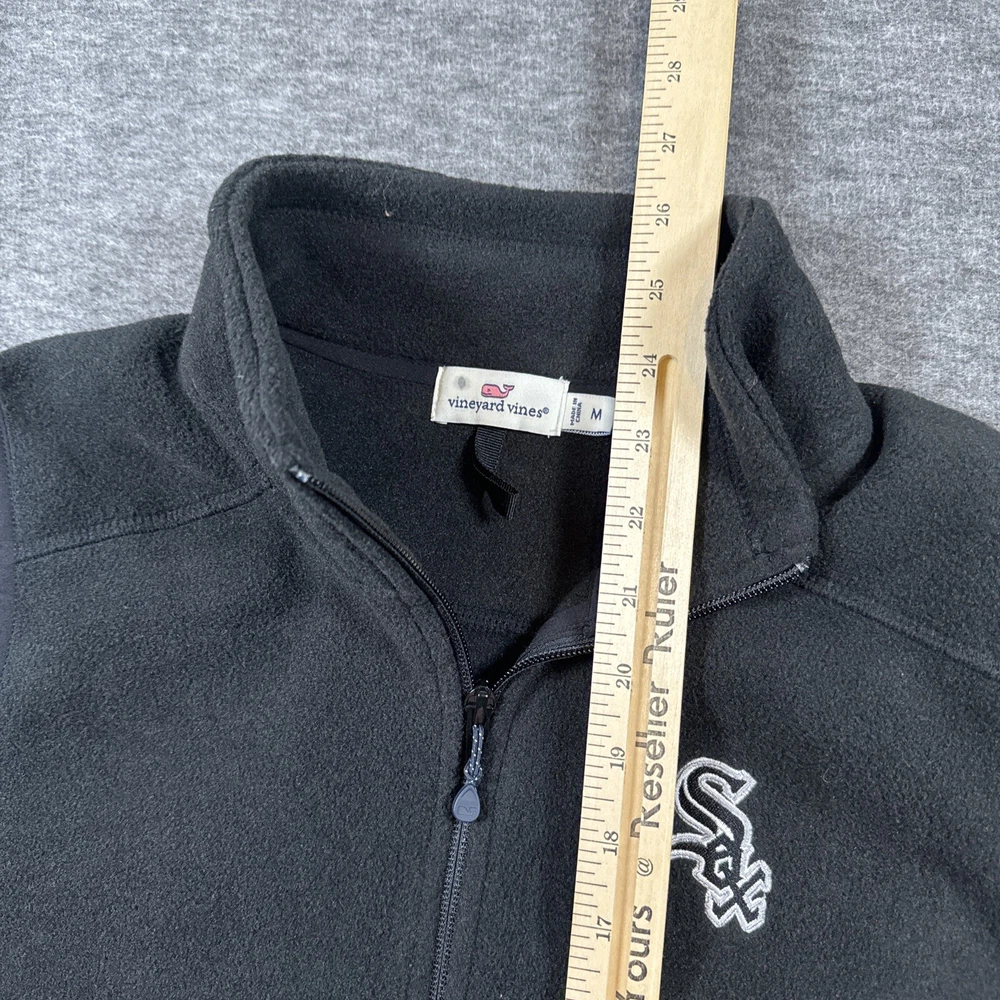 This Vineyard Vines fleece vest is a must-have for any Chicago White Sox fan. Made from durable polyester with a soft fleece fabric type, this black vest is perfect for layering in cooler weather. It features a full zipper closure and the iconic White Sox logo embroidered on the chest. The size is medium and the fit is regular for men. Whether you're at the game or out and about, this stylish vest is the perfect addition to any outfit.