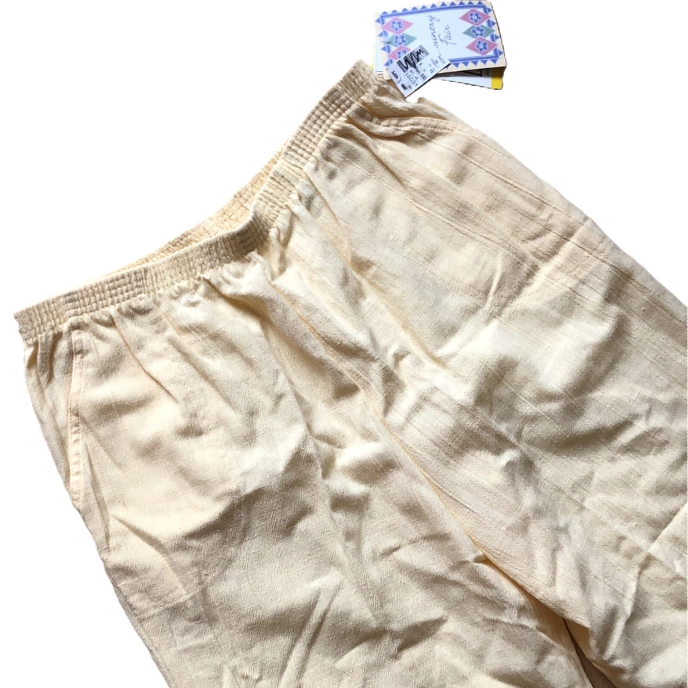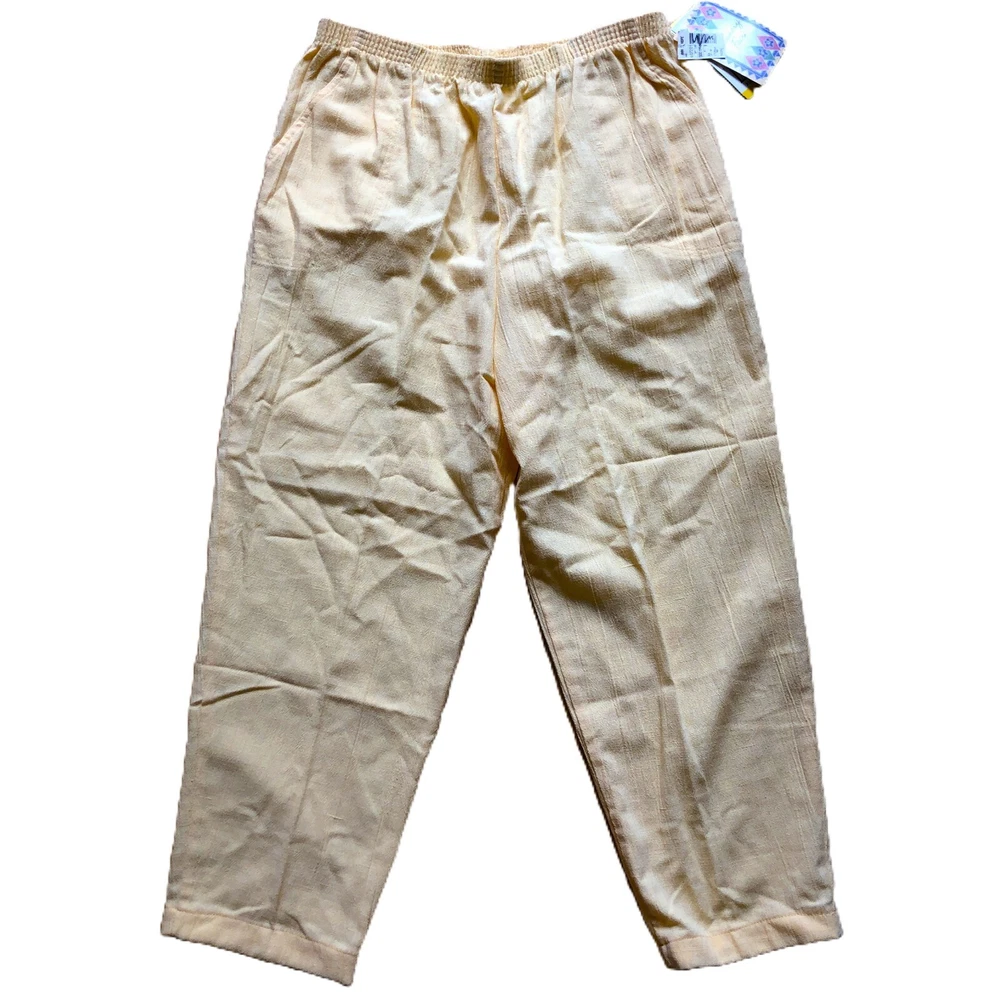 New Vintage Linen Wide Leg Pants Size L Yellow Relaxed Fit Ankle Length Summer