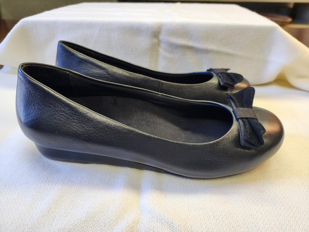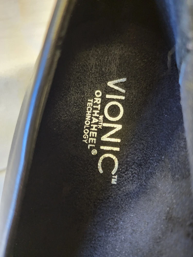 The Vionic 'Lydia' Demi Wedge in Black Leather is a stylish slip-on shoe designed for comfort and support. Featuring a round toe shape, low wedge heel, and bow accent, this shoe is perfect for casual or travel occasions. The shoe is crafted with leather upper material, fabric lining, and a rubber outsole for durability. It also includes features like arch support and motion control, making it suitable for walking activities. The classic design and orthopedic support make it a versatile and practical choice for everyday wear.