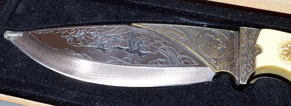 New WMG 2006 Hunting Knife - Pointer Dog Handle & Canadian Geese Engraved Blade This is a New WMG 2006 Hunting Knife - Pointer Dog Handle & Canadian Geese Engraved Blade . New with wood box (as pictured). 9.5" Long with 5.5" Blade. Includes Wooden Box. Terms For This Auction Payment is expected through Ebay Payments within 48 hours of end of auction. You can pay using your credit card, electronic check or a direct transfer from your account. Before bidding, please review all components (photos, text, terms, etc.) of this auction and bid carefully and ask any questions before bidding. All items are described to the best of our knowledge, if any item is not as described, please contact us immediately. we are happy to resolve an issue of any misrepresented item. This item is being sold as is, and thus, no returns unless the item is not as described or is misrepresented. If this is the case we will offer a full refund upon receipt of the returned item. International Buyers – Please Note: Happy to quote postage via email if the shipping detail and costs do not appear in the auction. Import duties, taxes, and charges are not included in the item price or shipping cost. These charges are the buyer's responsibility. Please check with your country's customs office to determine what these additional costs will be prior to bidding or buying. Please be patient!!!...International delivery sometimes takes up to 4 weeks due to your country's customs policies and regulations.