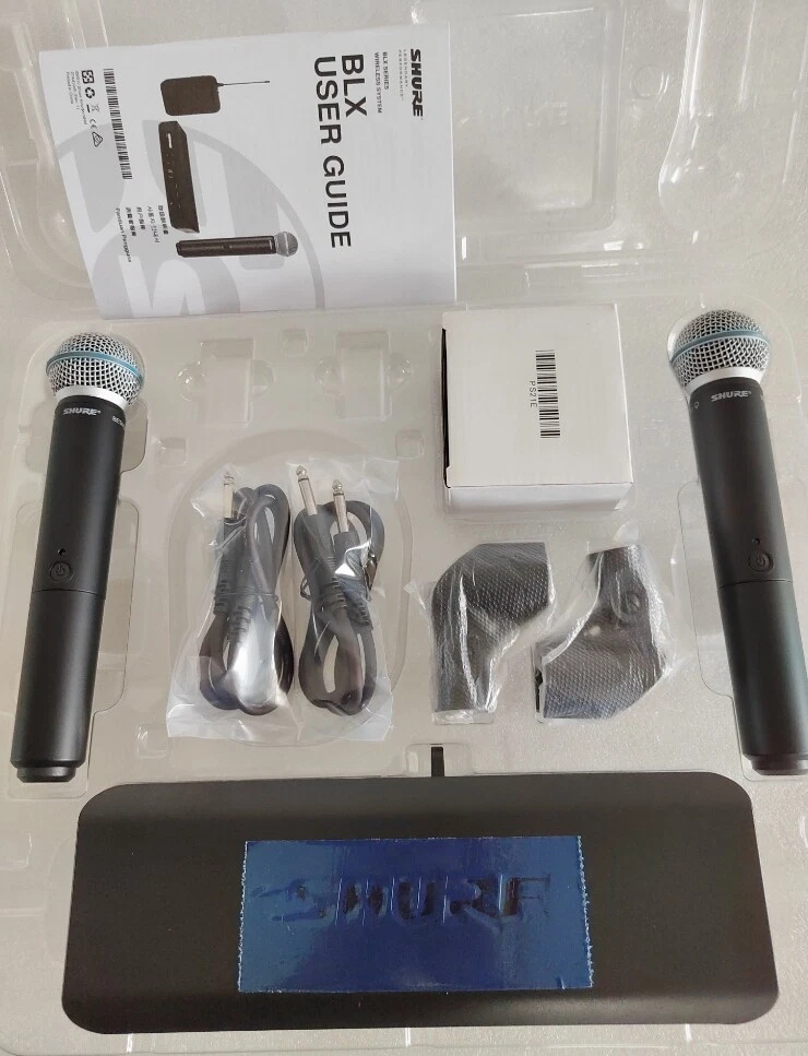 Wireless Vocal System SHUR BLX288 / Beta 58A w/2 BETA58 Microphones Express US Description: For performers who wish to unplug from the wire, BLX Wireless Systems are the clearest choice. delivers wireless confidence with legendary sound from industry-renown microphones, decades of wireless design proficiency and world-class construction.(including vocal, guitar, headset and presenter system), BLX Wireless Systems are ready to perform right out of the box. The BLX Wireless Vocal Combo System from S hure joins world-class design and construction with simple and easy setup and operation, featuring dual wireless channels, QuickScan frequency selection and Beta 58A professional-quality vocal microphone capsules for lead and backup vocal performance applications. Legendary sound and performance, right out of the box. New open box (only opened for inspection, not used) Package Included: BLX288 dual wireless receiver 2 BETA 58A handheld transmitters with integrated BETA 58A supercardioid dynamic microphone caps 2 microphone clip 4 AA batteries BLX User Guide (as shown in the figure) Return policy ● If you are dissatisfied in any way or need to return the product, please contact our customer service representative and let us know the details. We will definitely give you a satisfactory reply. ● Please choose from the following five reasons. The reason you choose has no impact on you or your refund amount, but it has a great impact on us as a seller. Choosing other reasons may trigger an internal investigation or an appeal to eBay, which will lead to a delay in your refund. 1) Just didn't like it 2) Doesn’t fit 3) Changed my mind 4) Ordered by mistake 5) Found a better Price On Dec 8, 2024 at 21:05:19 PST, seller added the following information:
