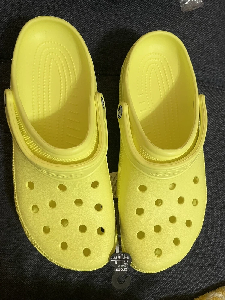 The New With Tag Crocs Classic CrocBand Yellow Comfort Sandals are unisex sandals in size M12. These Crocs feature a classic design with a bright yellow color, offering both style and comfort for men and women. The CrocBand detailing adds a touch of uniqueness to these sandals, making them a versatile and practical choice for everyday wear.