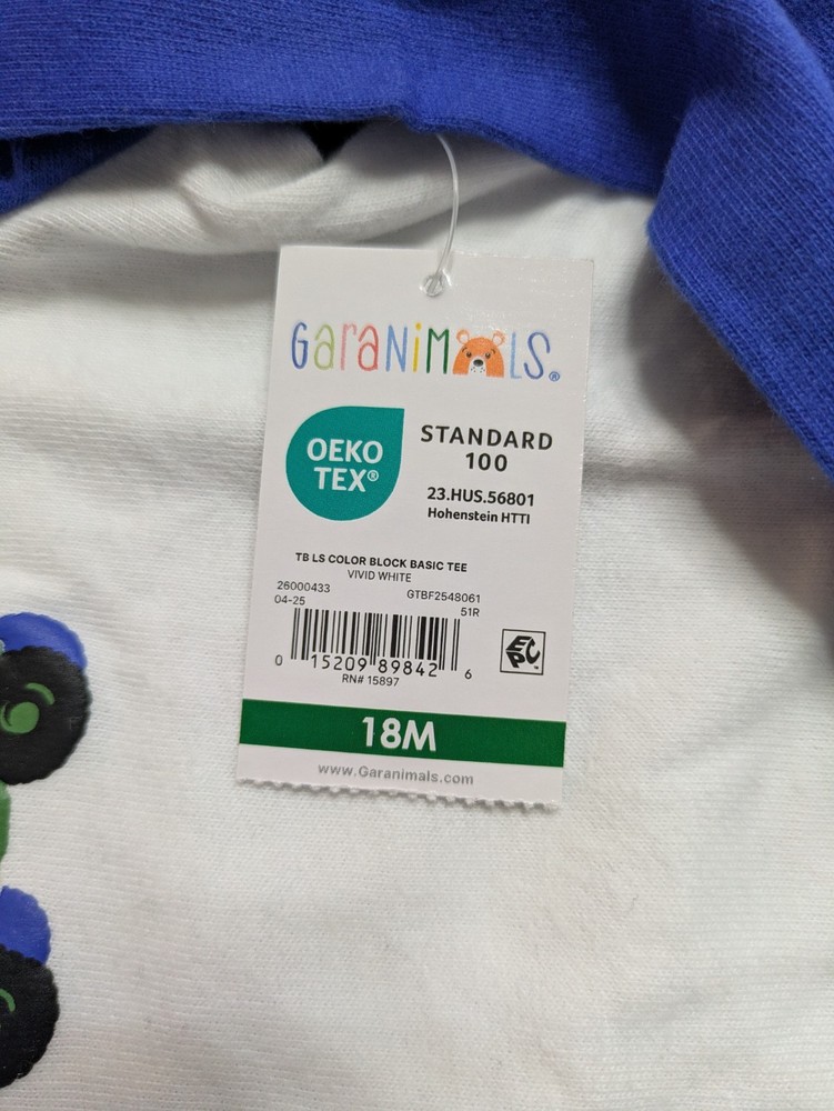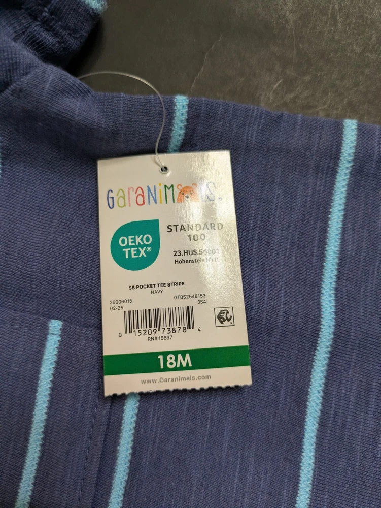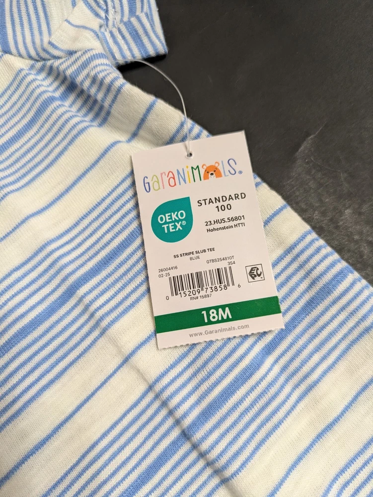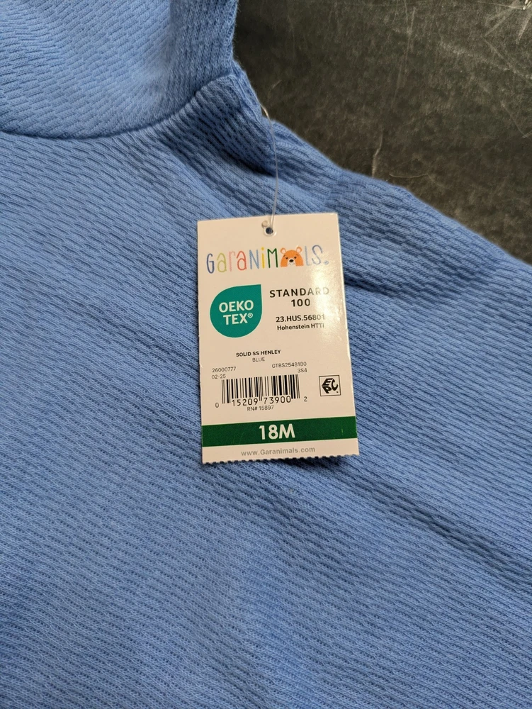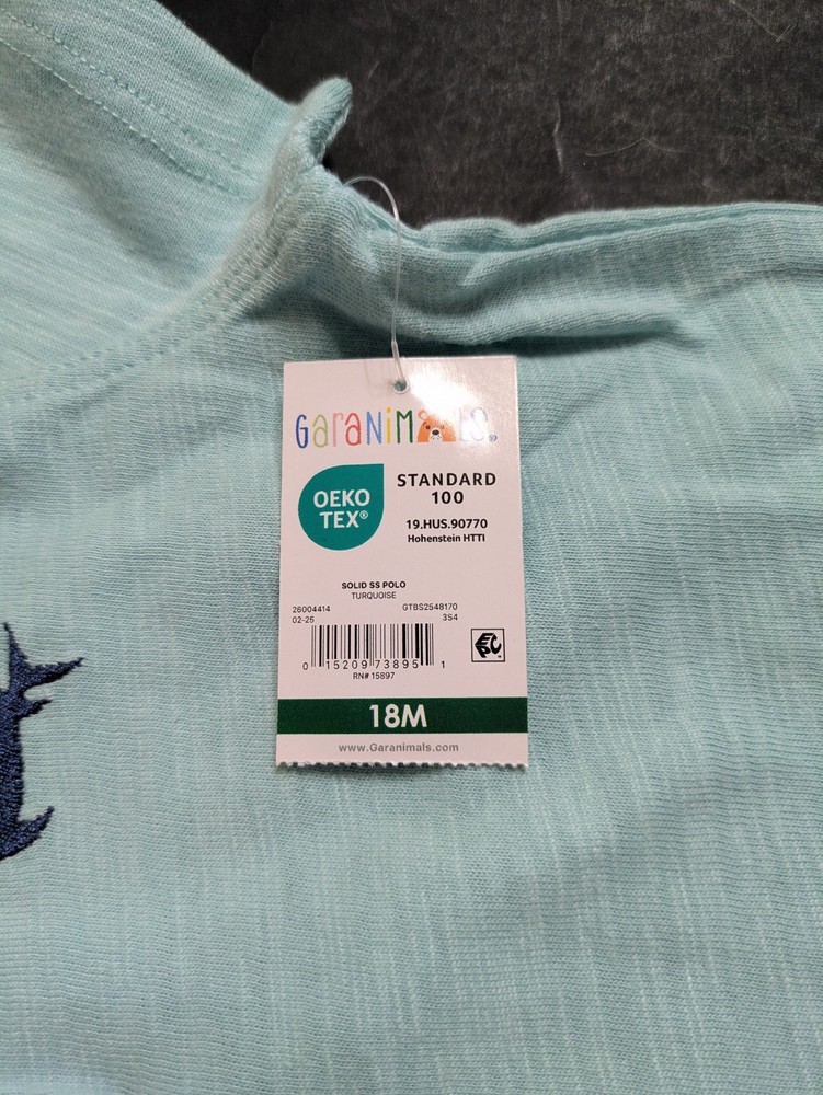This coordinated 6-piece top bundle from Garanimals is perfect for any toddler's spring or summer wardrobe. All items are New With Tags (NWT) and feature the OEKO-TEX Standard 100 certification for safety and quality. What’s Included: This bundle features a versatile mix of short-sleeve and long-sleeve tops in shades of blue, turquoise, white, and ivory: 1 SS Stripe Slub Tee: Blue and white thin stripes with an "AWESOME" graphic detail. 1 Solid SS Polo: Turquoise textured fabric with a small embroidered shark detail. 1 TB LS Color Block Basic Tee: Vivid White body with green and blue color-block sleeves and a dump truck graphic. 1 Stripe Tank Bodysuit: Ivory with multi-colored vertical stripes and blue snap details. 1 SS Pocket Tee Stripe: Navy blue with light blue horizontal stripes and a chest pocket. 1 Solid SS Henley: Blue textured "waffle" style knit with a button-front neckline. Product Details: Brand: Garanimals Size: 18 Months Condition: New With Tags (NWT) Features: OEKO-TEX Standard 100 Certified Country of Origin: 5 items made in Bangladesh 1 item made in India Shipping & Promotions: Special Promotion: Buy 2 or more Garanimals bundles and get FREE SHIPPING! Fast Shipping: Items are packed with care and shipped quickly to help you get what you need. Note: Please refer to the photos for a close-up look at the tags and specific patterns of each shirt.