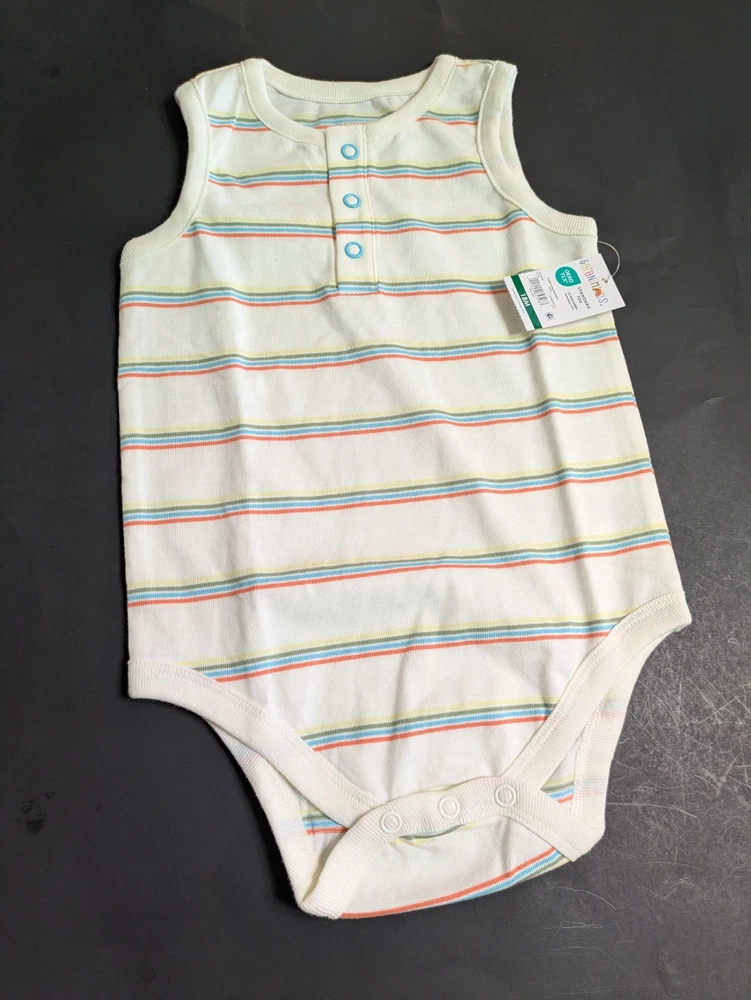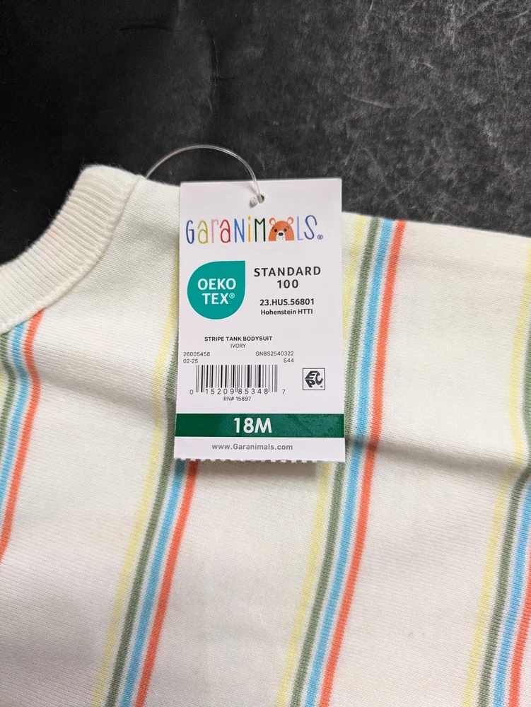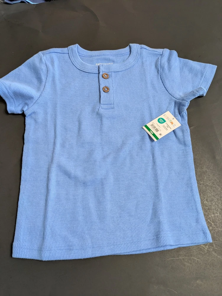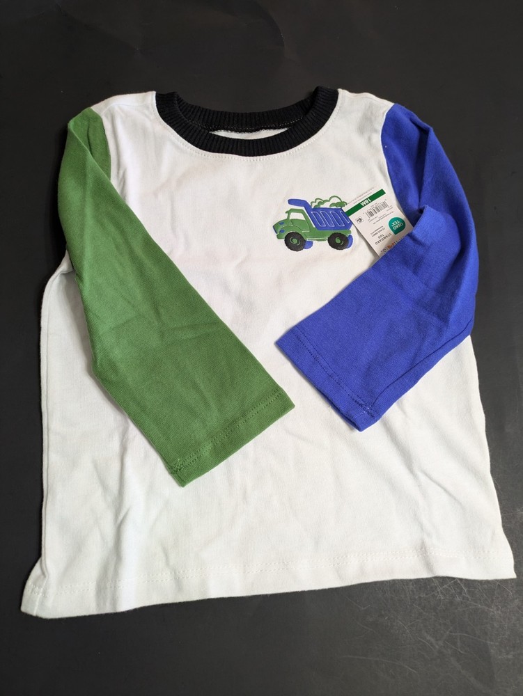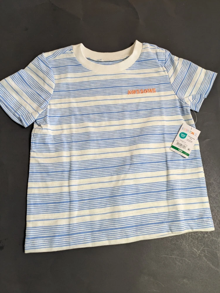 This coordinated 6-piece top bundle from Garanimals is perfect for any toddler's spring or summer wardrobe. All items are New With Tags (NWT) and feature the OEKO-TEX Standard 100 certification for safety and quality. What’s Included: This bundle features a versatile mix of short-sleeve and long-sleeve tops in shades of blue, turquoise, white, and ivory: 1 SS Stripe Slub Tee: Blue and white thin stripes with an "AWESOME" graphic detail. 1 Solid SS Polo: Turquoise textured fabric with a small embroidered shark detail. 1 TB LS Color Block Basic Tee: Vivid White body with green and blue color-block sleeves and a dump truck graphic. 1 Stripe Tank Bodysuit: Ivory with multi-colored vertical stripes and blue snap details. 1 SS Pocket Tee Stripe: Navy blue with light blue horizontal stripes and a chest pocket. 1 Solid SS Henley: Blue textured "waffle" style knit with a button-front neckline. Product Details: Brand: Garanimals Size: 18 Months Condition: New With Tags (NWT) Features: OEKO-TEX Standard 100 Certified Country of Origin: 5 items made in Bangladesh 1 item made in India Shipping & Promotions: Special Promotion: Buy 2 or more Garanimals bundles and get FREE SHIPPING! Fast Shipping: Items are packed with care and shipped quickly to help you get what you need. Note: Please refer to the photos for a close-up look at the tags and specific patterns of each shirt.