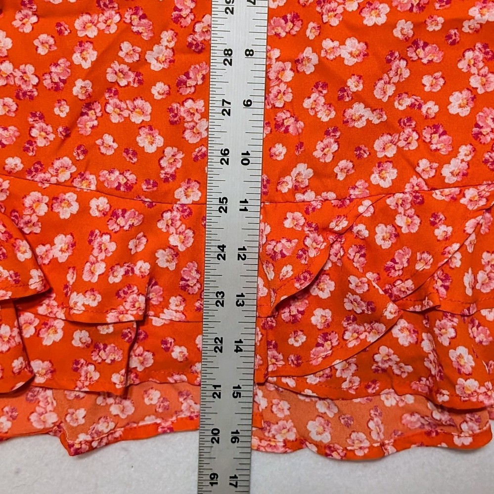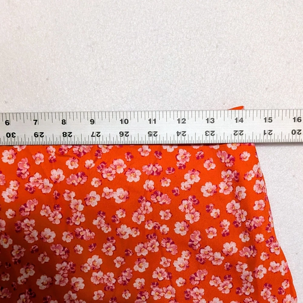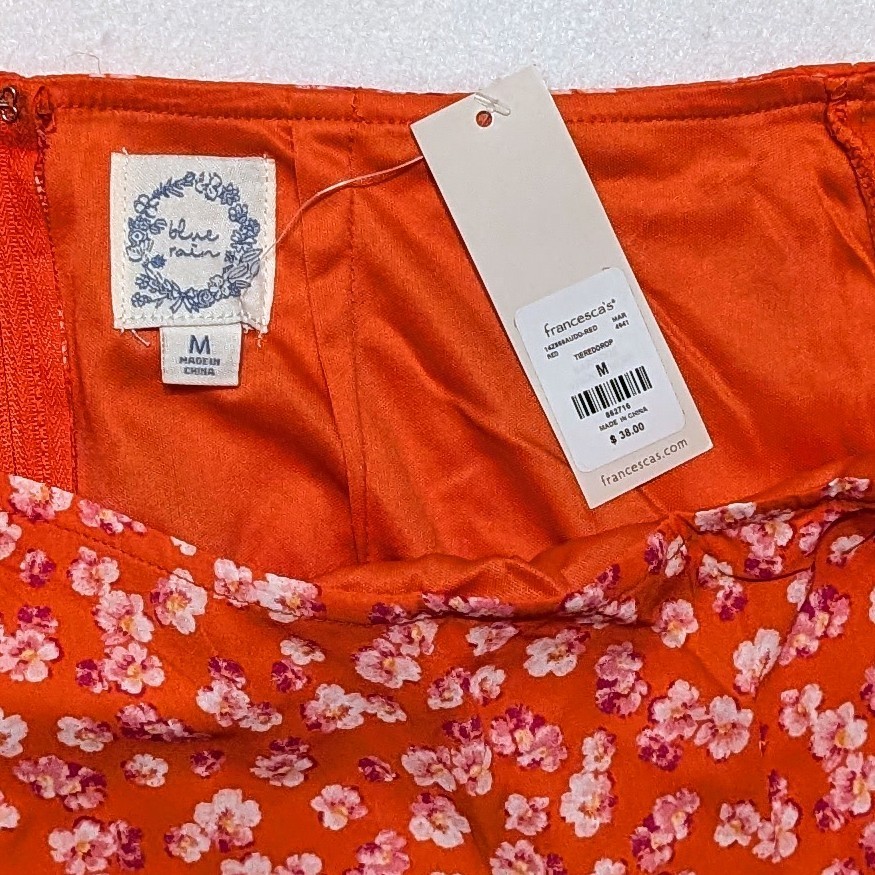 New Women's Francesca's Blue Rain Medium Red/Orange Floral Skirt NWT