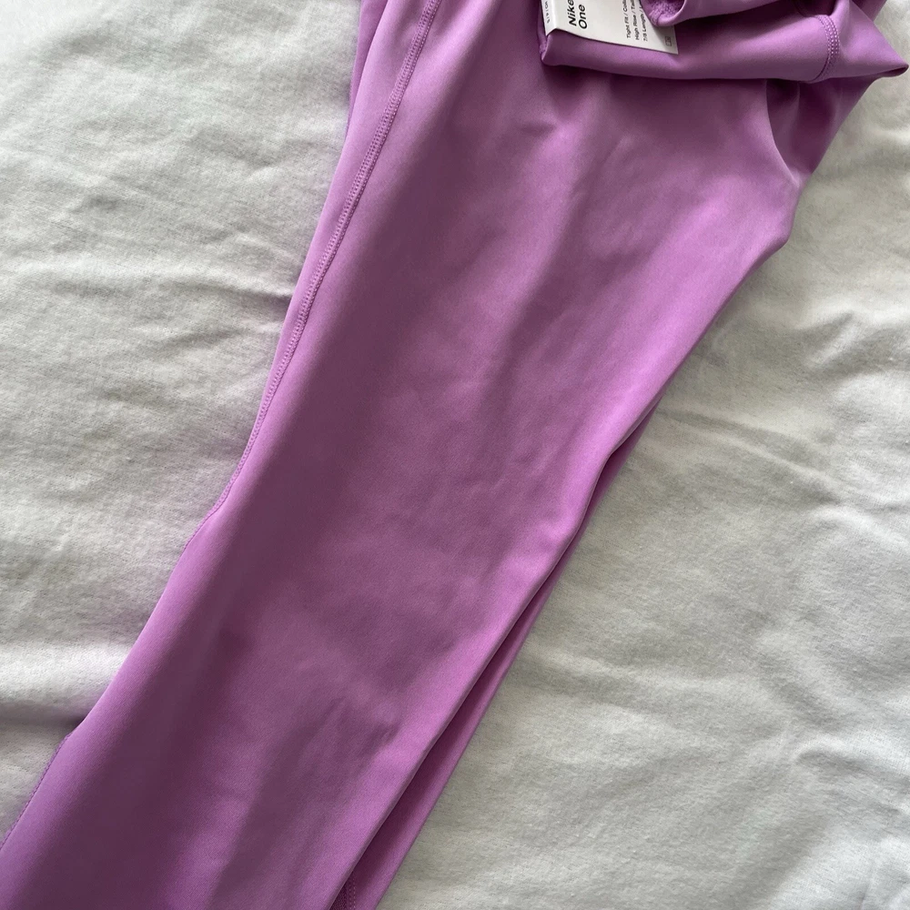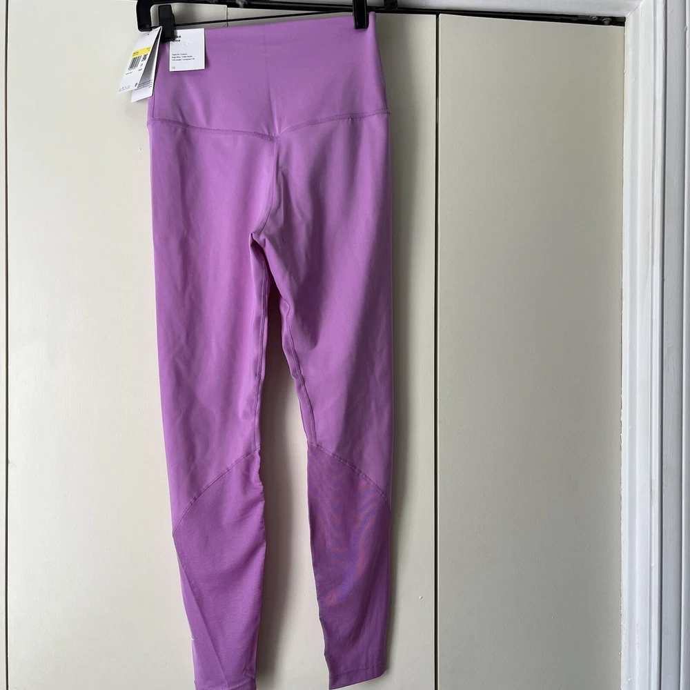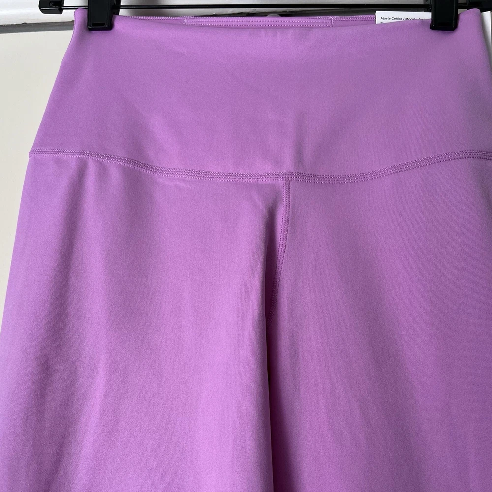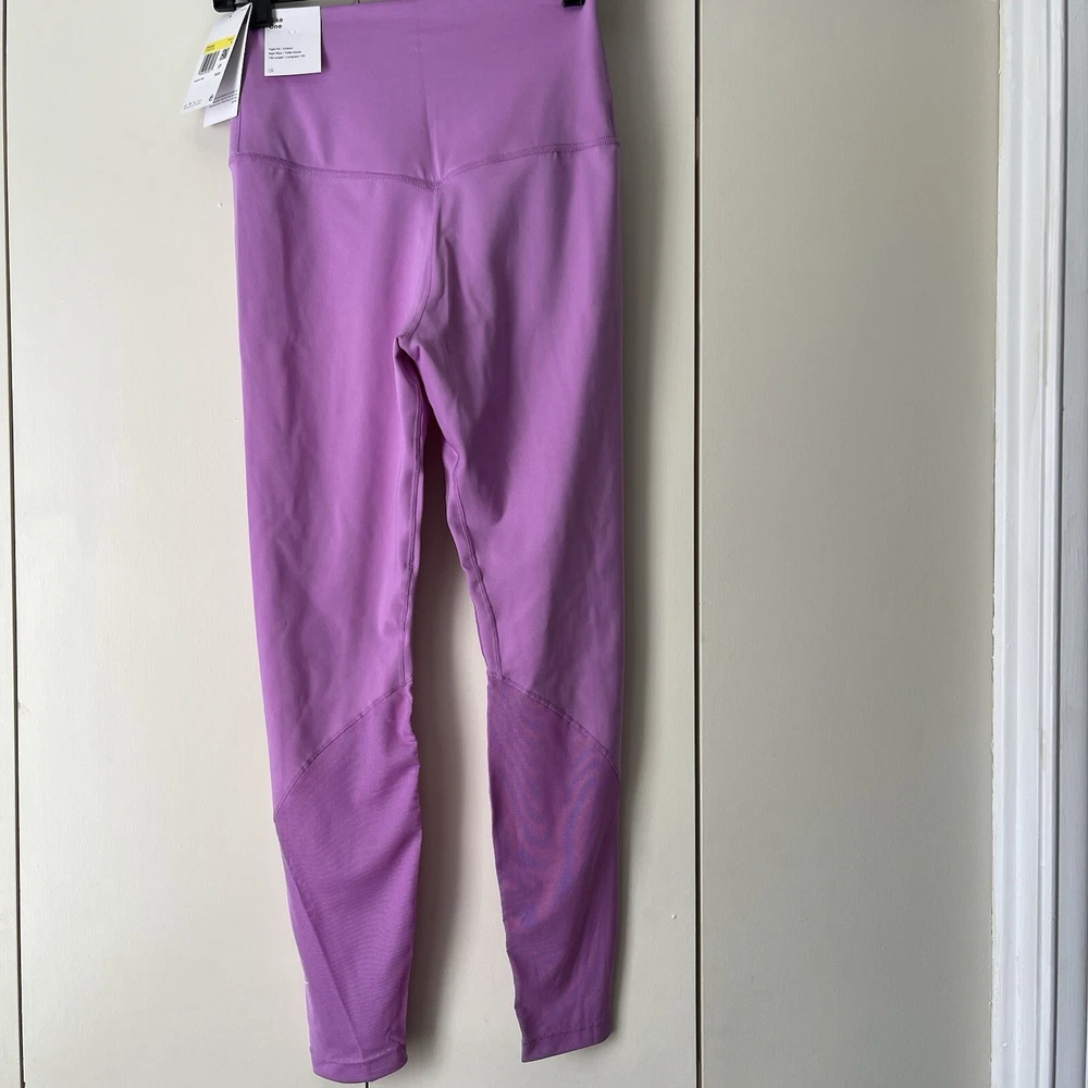 New Material body 79% polyester 21% spandex Mesh 81% polyester 19% spandex Mesh in both legs Moves sweat away Color light purple/ pink