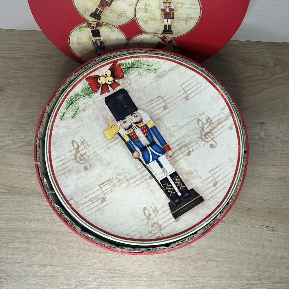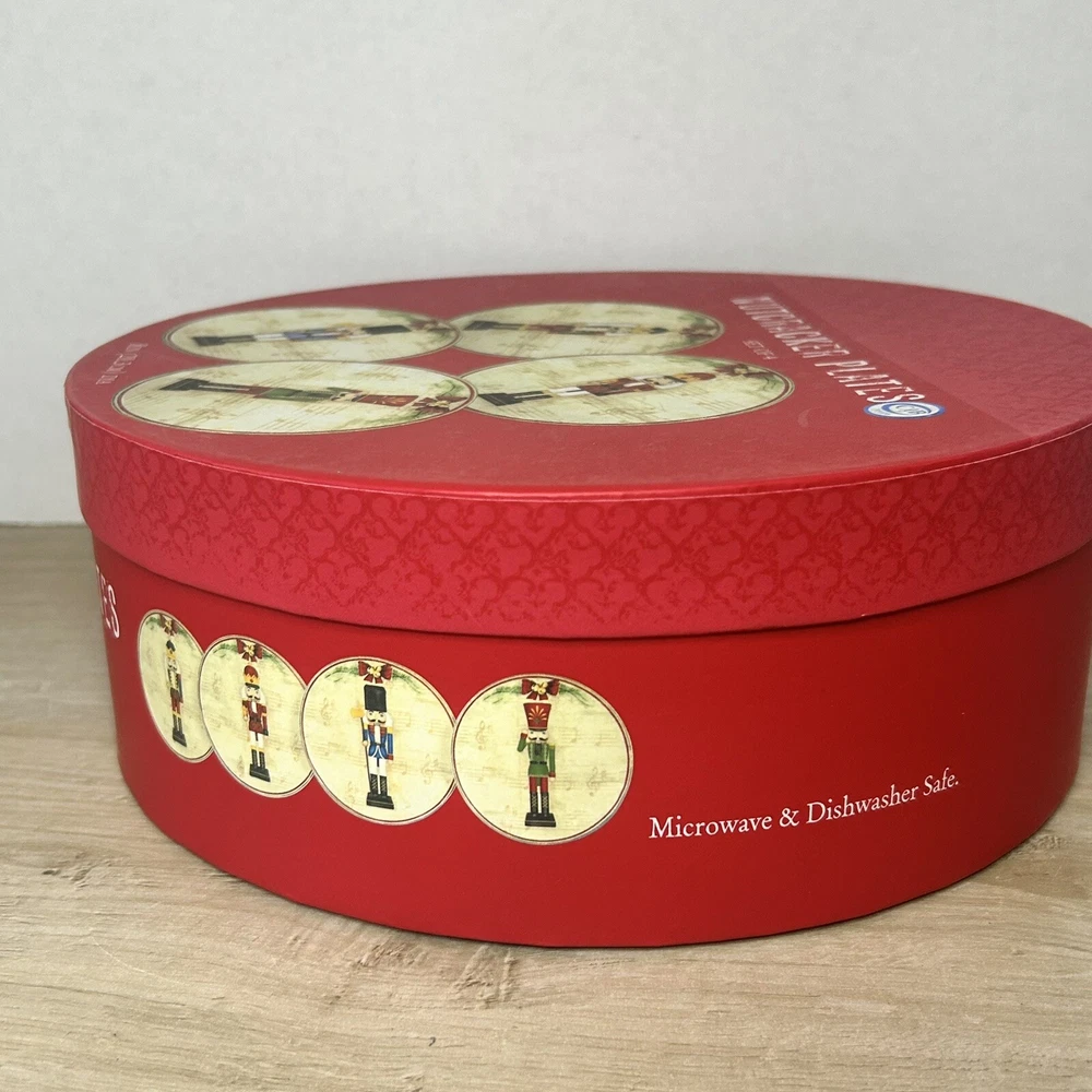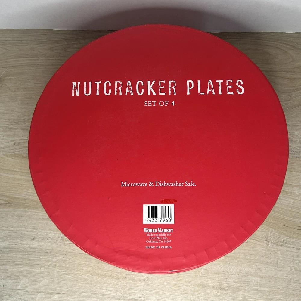 New in box! World Market nutcracker 8.5” plates. Great for your holiday dining or party. Appearance of wear around the edges is how they are made and intended.