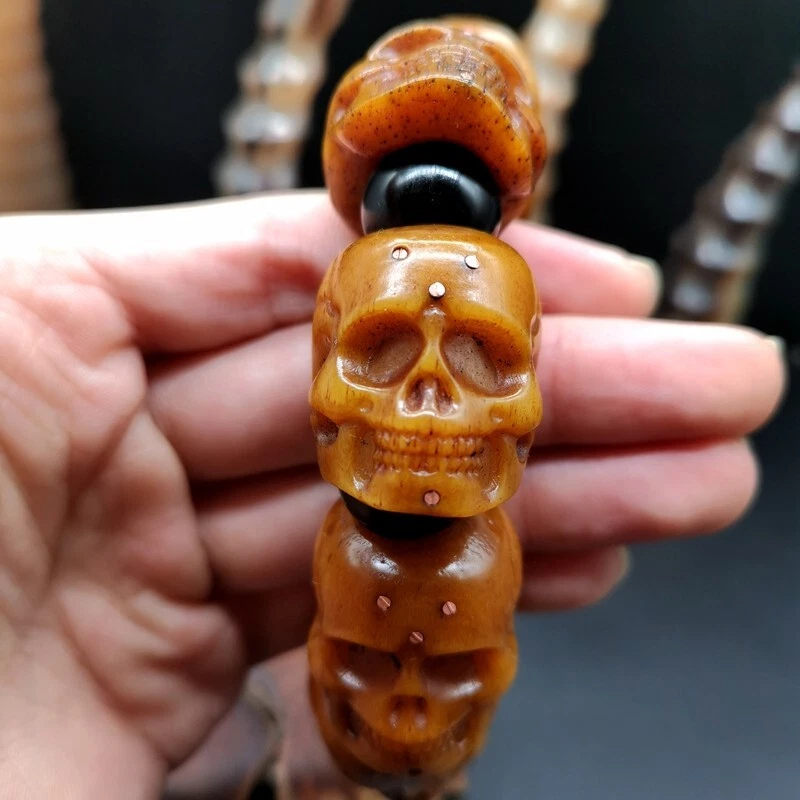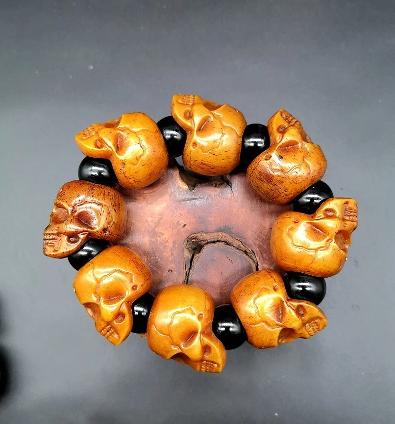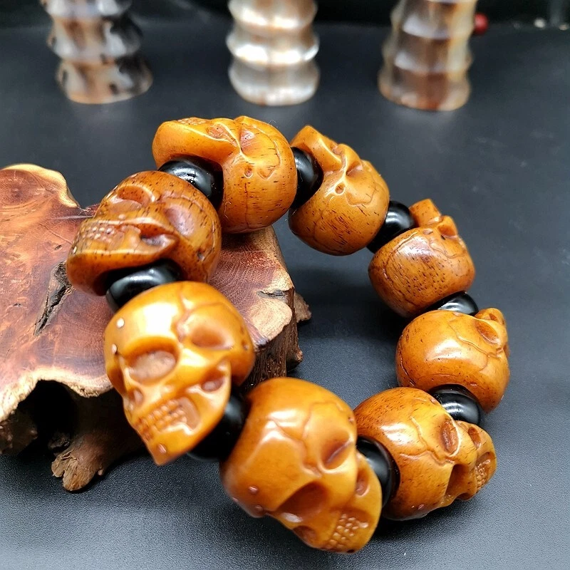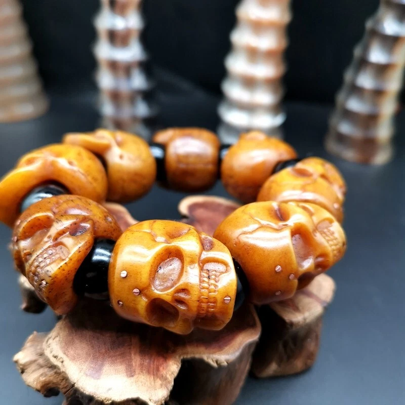 New Yak Carved Skull Beads Bracelet Amulet Feng Shui Decor