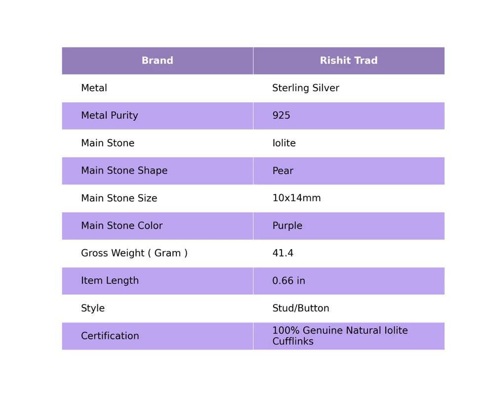 This fabulous Handmade Cufflinks is the right choice for you to dress to impress. It is made with 925 Sterling Silver along with the Iolite studding and the spectacular design adds to its glittering. ---------------------------------------------------- ------------ Welcome to Our Shop Rishittrad ---------------------------------------------------- ------------ Description:- SKU :- CL-6-7 Metal :- Sterling Silver Metal Purity :- 925 Gemstone :- Iolite Gemstone Color :- Purple Gemstone Shape :- Pear Gemstone Origin :- Setting :- Channel-Set Cufflink Lenght : - 0.66 Inches ---------------------------------------------------- ------------ -------- ------------ Elegant Birthday Tribute:- Discover the essence of sophistication with our Birthday Radiance collection. Crafted with exquisite attention to detail, each piece embodies the timeless elegance and symbolic significance of birthdays. Craftsmanship Excellence:- Meticulously fashioned from premium 925 sterling silver, our jewelry pieces boast a classic and enduring design. The rich tones of natural gemstones complement the silver setting, creating a captivating harmony that resonates with wisdom and truth. Symbol of Personal Growth:- Gift with intention and meaning. Our Emblem of Wisdom pieces symbolize heartfelt wishes for personal growth and enlightenment on the recipient's special day, making it a cherished gesture of love and appreciation. Versatile Elegance:- Measuring at 1.2 inches, our creations seamlessly blend into any ensemble, offering both daily wearability and the ability to elevate sophisticated looks for special occasions. Their adaptable design ensures they become treasured additions to any jewelry collection. Thoughtful Expression of Love:- Surprise your beloved with a gift that transcends mere adornment. Our Natural Gemstone 925 Sterling Silver collection is a stylish and thoughtful token, exuding elegance and emotion while conveying warmest wishes with enduring grace. Exquisite Presentation:- Delight in the joy of gifting with our meticulously presented pieces, elegantly housed in an exquisite gift box. Make their birthday truly memorable by presenting them with a gift that captures the allure and timeless elegance of sterling silver. -------------------------- Image Policy----------------------------- All images are captured in natural lighting. The product showcased is the exact item you'll receive. -------------------------- Delivery Policy-------------------------- Standard Shipping typically takes 15-25 days, depending on your location. For expedited shipping, additional charges will apply. --------------------------- Product Policy--------------------------- You will receive the exact product depicted in the photos. All items are meticulously handcrafted. ------------------------------ Order Policy------------------------------ We welcome orders from around the globe. Custom orders are also accepted. Bulk orders are available upon request. Should you have any queries about our products, please don't hesitate to reach out. Upon receiving your product, we'd appreciate your feedback. ⋆⋆✦✧✦⋆⋆⋆⋆✦✧✦⋆⋆⋆⋆✦✧✦⋆⋆⋆⋆✦✧✦⋆⋆⋆⋆✦✧✦⋆⋆⋆⋆✦✧✦⋆⋆⋆⋆✦✧✦⋆⋆ "Discover a captivating collection of handcrafted gemstone jewelry at our boutique." https://www.ebay.com/str/rishittrad0 ♥ Thank you for choosing us ♥