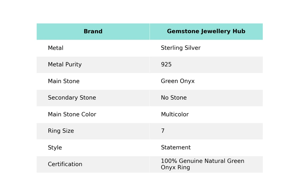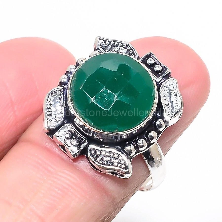 Welcome to Gemstonejewelleryhub New Year Deal Green Onyx Stone Sterling Silver Statement Daughter Boho Ring US 7 Handmade Ring, Sterling Silver Ring, Green Onyx Ring, Handcrafted Ring This exquisite statement ring is a perfect gift for any special occasion, such as engagement, wedding, anniversary, or birthday. The ring is beautifully crafted with a silver base metal, adorned with multicolor green onyx gemstones that are eye-clean and excellent cut. The ring is handcrafted and engraved with a unique channel-set setting style, making it a perfect addition to any jewelry collection. The ring is nickel-free and comes with a seller warranty, making it a safe and reliable purchase. It is a perfect match for any bohemian, ethnic, or halo theme, and is sure to add a touch of beauty, luck, love, healing, or special occasion to any outfit. This ring is a must-have for anyone who appreciates the beauty of gemstones and metalwork. SKU : MR-4376 Gemstone : Green Onyx Stone Shape : As Seen In Picture Metal Purity : 925 Sterling Silver Ring Size : 7 US Adjustable : _________________________________________________________________ Shipping Handling - Charge - Free ( Condition apply ) Handling Time - One business day . Delivery Time - 3 to 23 Days ( Various on destination ) Postage service - (A.) India Post - Below $100 order which takes 11 to 23 days . (B.) USPS, Fedex, DHL , Aramax- Order above $100 which takes 3 to 7 days . _________________________________________________________________ Returns - 1. We provide a 100% Money Back Guarantee, excluding shipping costs, within 30 days from the date of item receipt. 2. The item must not be altered or damaged in any way shape or form. 3. Upon receiving these items your payment will be refunded. 4. Kindly reach out to us via email to obtain return instructions prior to initiating the return of merchandise. 5. Please allow up to 1 business day for all returns to receivecredit. 6. Sizing does not affect the return policy. _________________________________________________________________ Payment - We accept PayPal for Payment , should made within three days once buying or winning done , in case of late information expected . _________________________________________________________________ FAQ's - Q.(A) ARE THE ITEMS YOU ARE SELLING BRAND NEW? We exclusively offer brand-new products, refraining from the sale of pre-owned jewelry. Our entire jewelry collection is composed of 100% natural, conflict-free pieces. We do not engage in the trade of imitation or lab-grown gemstones and diamonds. Q.(B) WHAT ARE YOUR BUSINESS HOURS? Our business hours are Monday to Friday, 10:00AM to 6:00PM, excluding holidays. ________________________________________________________________ Gemstonejewelleryhub is dedicated to providing customers with exceptional handmade jewelry crafted to the highest standards of quality. We operate as both connoisseurs and manufacturers of artisanal jewelry, possessing a profound expertise in the art of elevating gemstones to perfectly align with any aesthetic preference. We are pleased to offer you the opportunity to create your own jewelry collection, adorned with authentic and exquisite natural gemstones. Our team of highly skilled artisans painstakingly crafts each individual jewelry piece, ensuring the creation of products with a unique identity that feature genuine gemstones. The jewelry articles presented on our website accurately depict the precise pieces that you will receive.