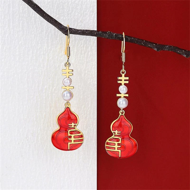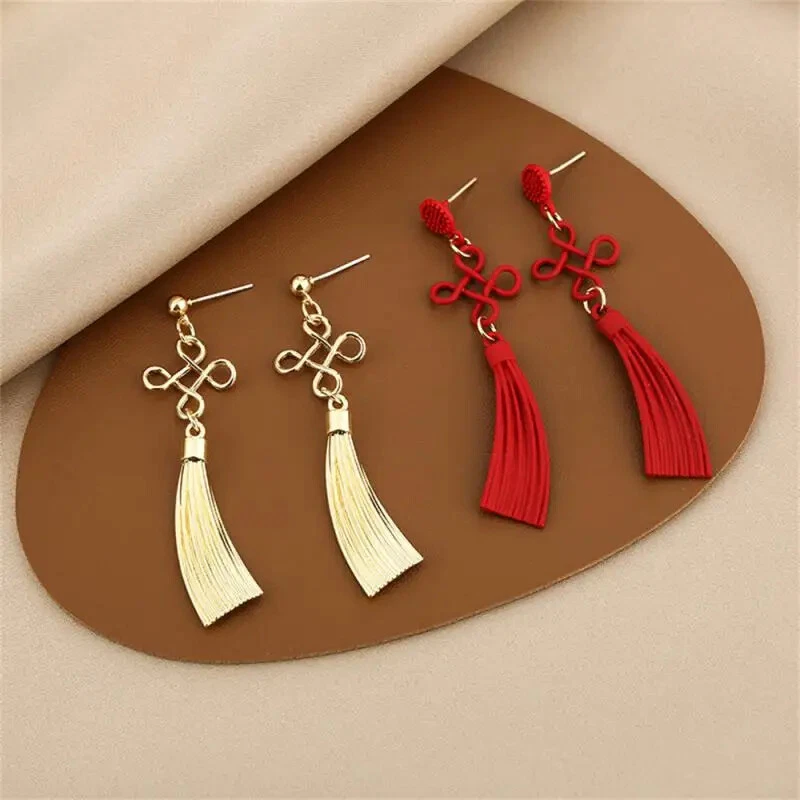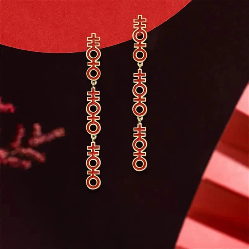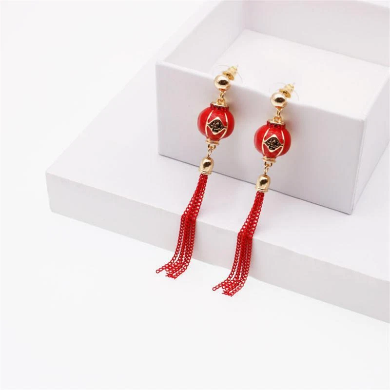 New Year Red Earrings For Women Chinese Style Festive Good Luck Metal Tassel Pendant Charm Ear Hook Party Creative Jewelry Gifts Description: Name: Earrings Material: Alloy Treatment Process: Dripping Oil Place Of Origin: Yiwu Style:personality Features: 1. Fashionable And Trendy Accessories, Full Of Atmosphere 2. Made Of High-quality Materials, Durable And Not Easy To Fade. 3. Simple And Versatile, Fashionable And Beautiful, With Strong Sense Of Decoration 4. High-profile, Eye-catching And Comfortable To Wear 5. Add A Touch Of Elegance And Charm To Any Outfit Package Included: 1 Pair* Earrings