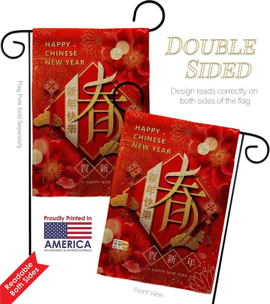 New Year Spring Garden Flag 2pcs Pack Lunar Good Luck Prosperous Seasonal Arr...
