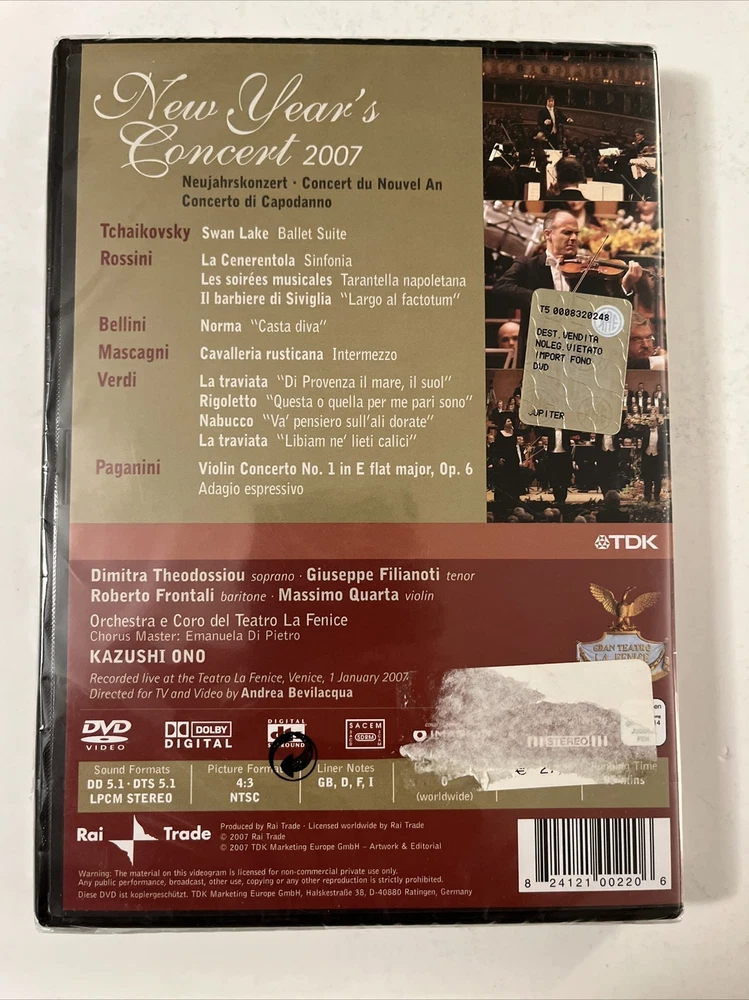 This DVD features a classical concert with Kazushi Ono and Massimo Quarta at Teatro La Fenice. The video format is NTSC and is contained in a tall/DVD case. It has a rating of NR and an aspect ratio of 4:3. The DVD is a concert and was released in 2007 by Rai Trade. The language is Italian and it is a region-free DVD with a region code of DVD: 0/All. The sub-genre is classical and the genre is musical and performing arts. This DVD is a must-have for any classical music lover or collector.