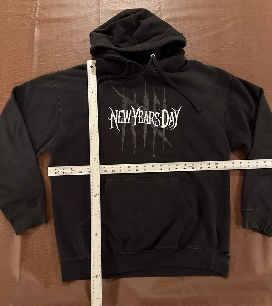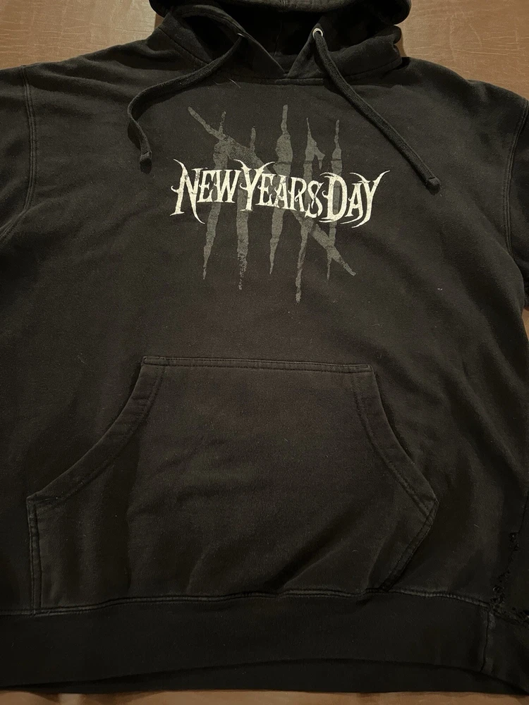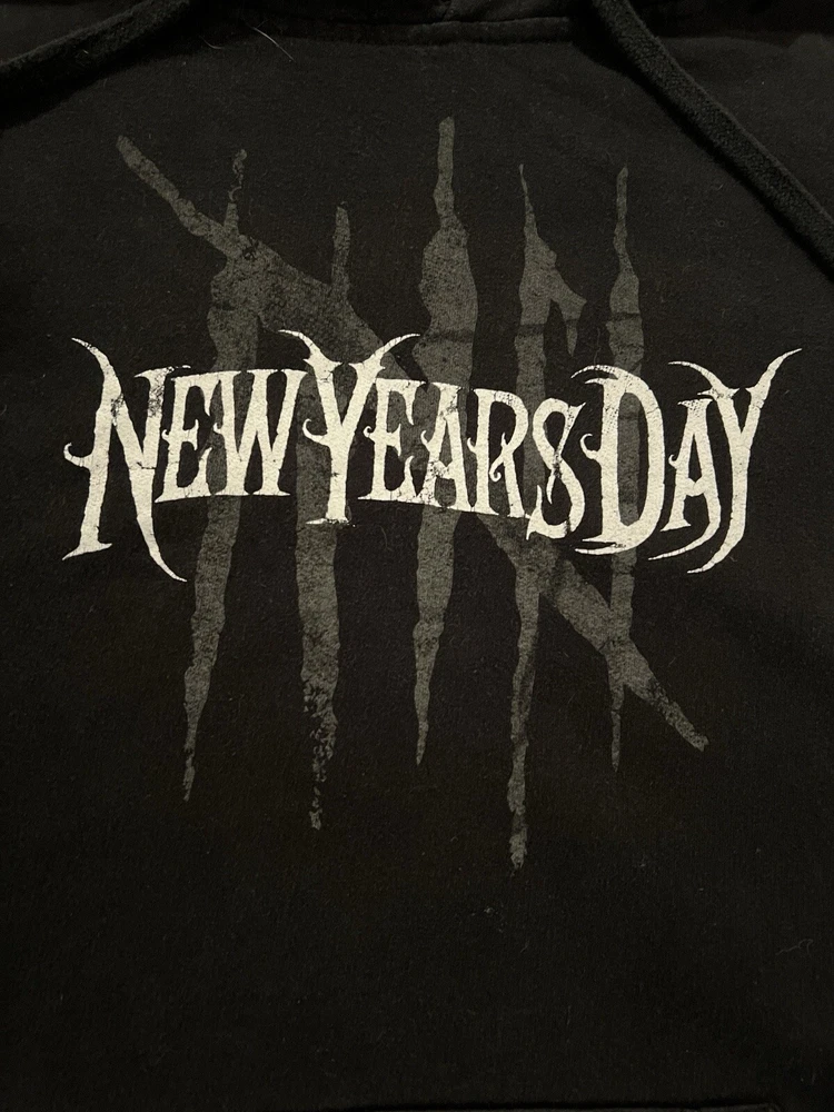 New Years Day band hoodie sweatshirt. Overall super nice fade. Has some minor wear/holes bottom of left side, see pic. Tagged Large. Please check measurements in pictures before purchasing. Comes from a pet-free, smoke-free home. Check out my closet for more band, brew, sports, and nerd/geek culture graphic tees and other items. #bandtee, #concerttee, #rocknroll, concert, music, band tee, band t-shirt, festival, Memphis May Fire, HellYeah, Afterlife, Devour The Day, In This Moment, Lilith Czar, Black Veil Brides, Motionless in White, Bullet for my Valentine, Three Days Grace, DED, Starset, Atreyu, Ice Nine Kills