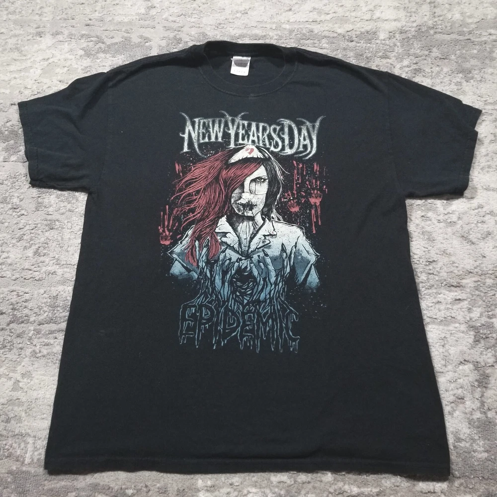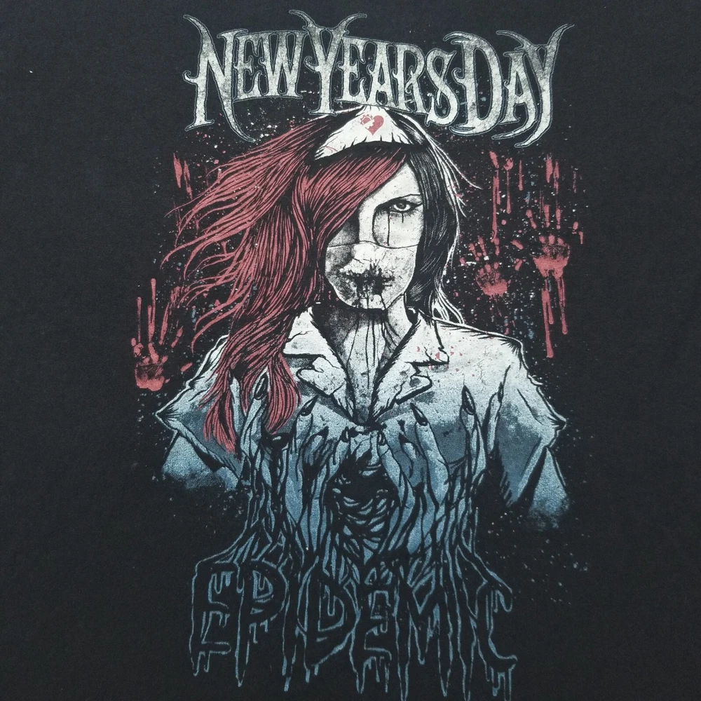 HomeNew Years Day Epidemic T Shirt Mens Large Album Metal Rock Nurse Graphic Black