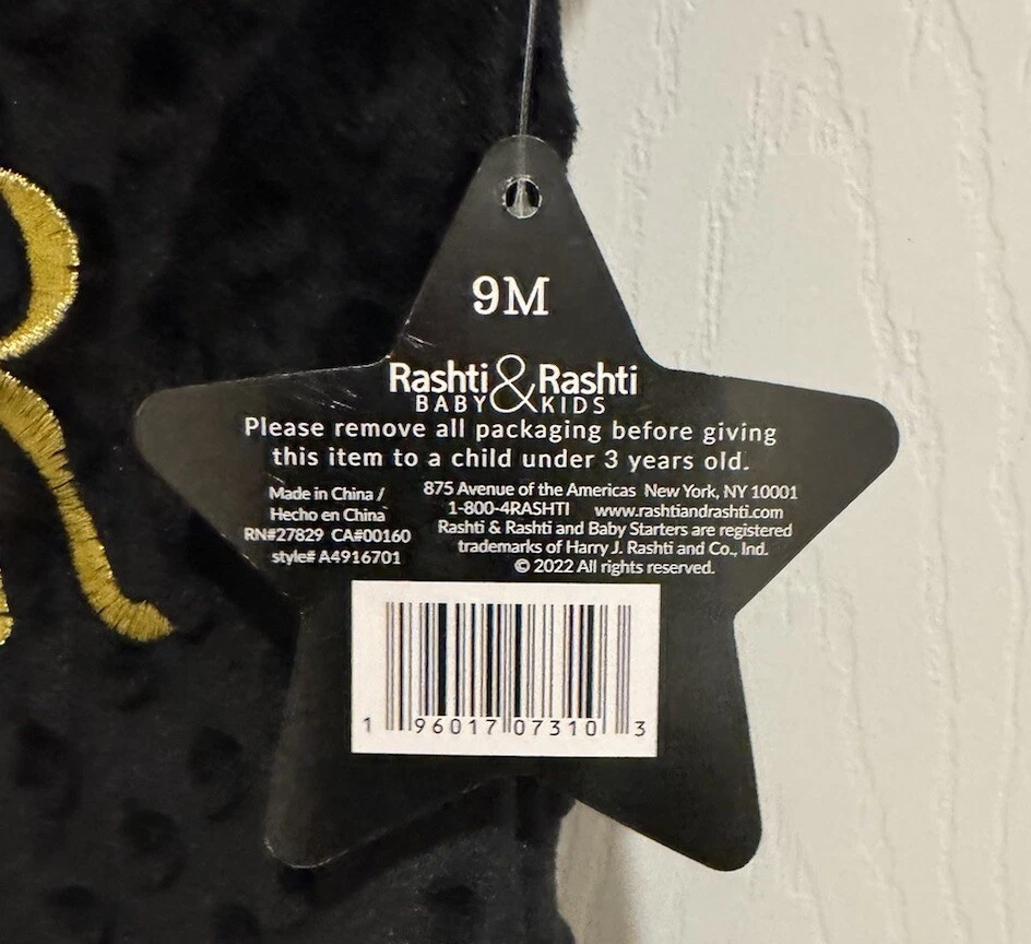 •New •Baby Starters By Rhasti & Rhasti •9 months •Unisex •One- Piece Footed Outfit •Black With Baby Of The In White Font, Year In Gold Font & A Baby Bottle •Snap Closures •100% Polyester Exclusive Of Decorations •Machine Wash Cold, Tumble Dry Low •Wreath Hanger Not Included •Stored In A Smoke Free, Clean Home