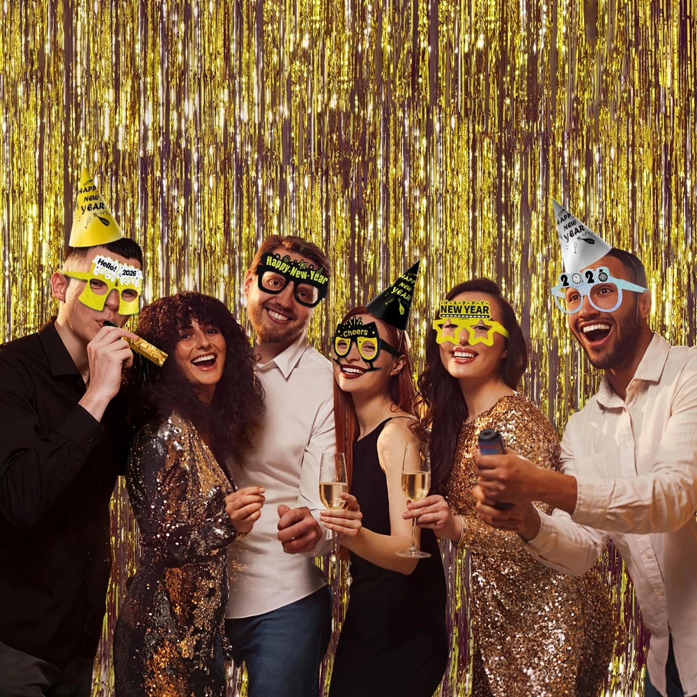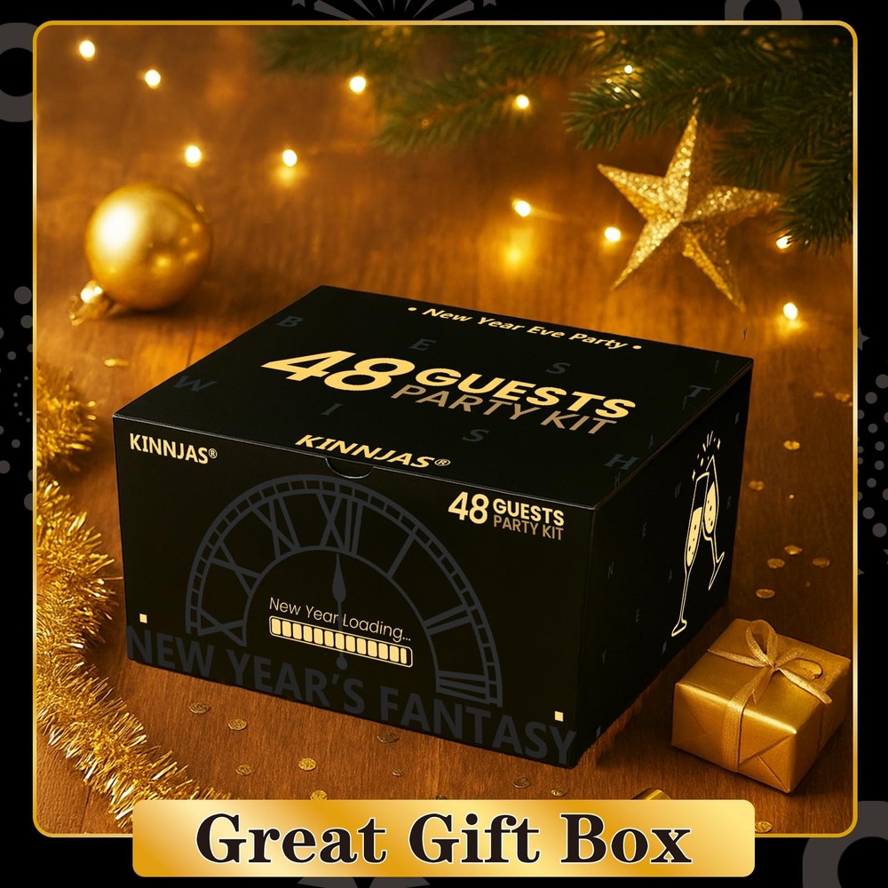 New Years Eve Party Supplies 2026 - Happy New Year Party Supplies Kit for 50 Guests, Including Hats, Glasses, Les, Beads, Squakers, a backdrop and a banner NEW YEARS PARTY SUPPLIES 2026 - This pack in cludes 25 Hats, 25 Glasses, 25 Les, 25 Beads, 25 Squakers, 25 Blowouts, a Happy New Year Backdrop, a New Years Eve Party Banner and a New Years Eve Backdrop HIGH QUALTIY NEW YEAR BACKDROP - The new year backdrop in this pack is made of high quality fabric, which is thick, durable and well printed REAL FOIL - As you see from the picture, the banner is shinny and bright. It's not printed by ink. It's real foil GREAT BOX - All the stuffs are packed in a great box. What's more Different parts are individually packaged in different bags. You don't need to worry about there is a mass in the box 100% GUARANTEED AND CUSTOMER SERVICE - We're absolutely sure you'll love our product. If, for some reason, you are not satisfied with the kit, we provide 45-day money-back. Your satisfaction means the world to us. So feel free to contact us if you have any question