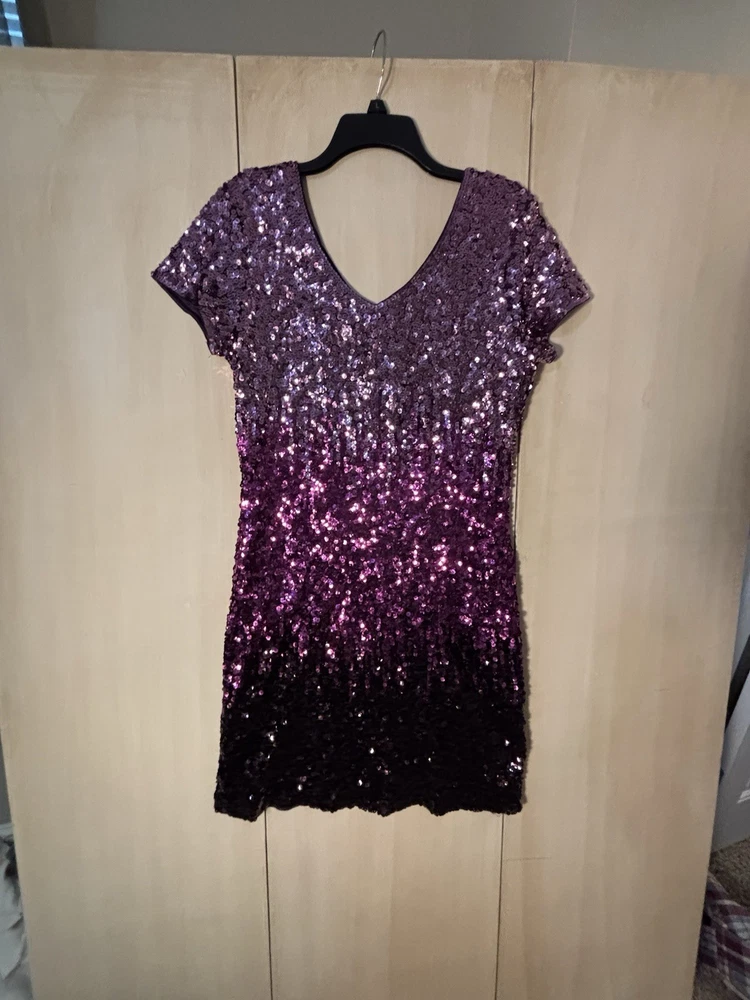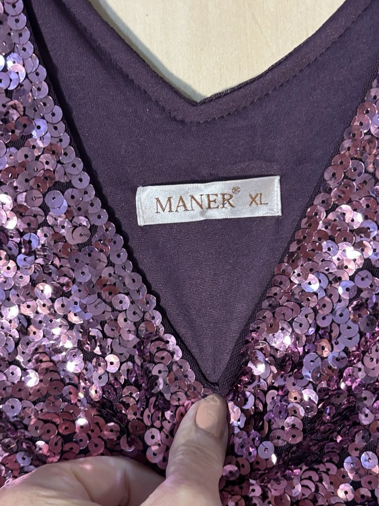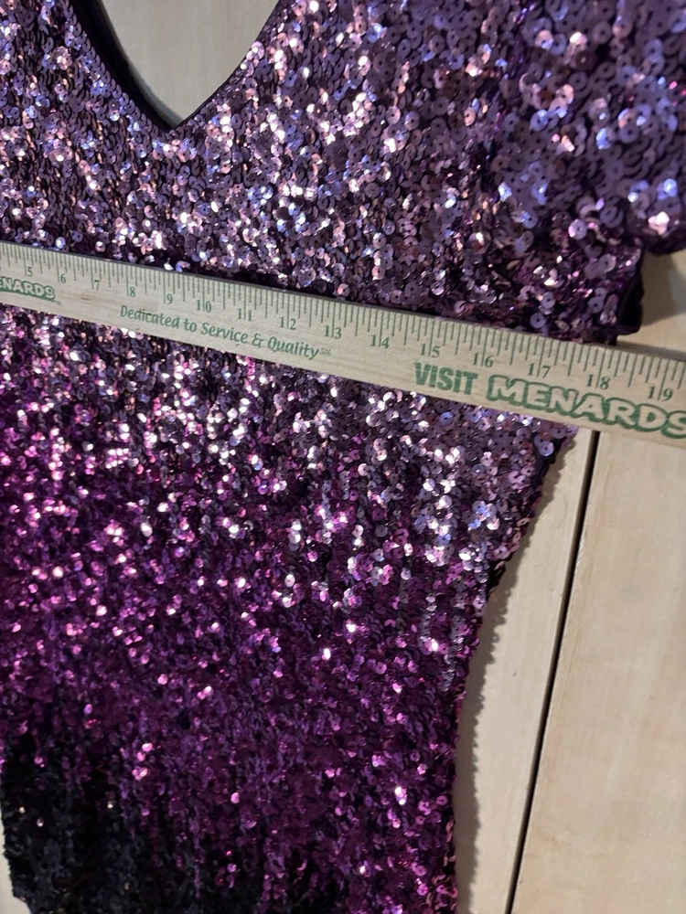 This Women's XL Purple/Pink Sequin Dress by Maner is perfect for a Y2K fairy-inspired holiday cocktail party. The dress features short sleeves, a V-neckline, and a bodycon style for a flattering fit. Made of polyester, it gleams with sequin accents that add a touch of glam to the short, cocktail-length dress. The vibrant purple pink color and fairy character make it a standout choice for year-round parties.