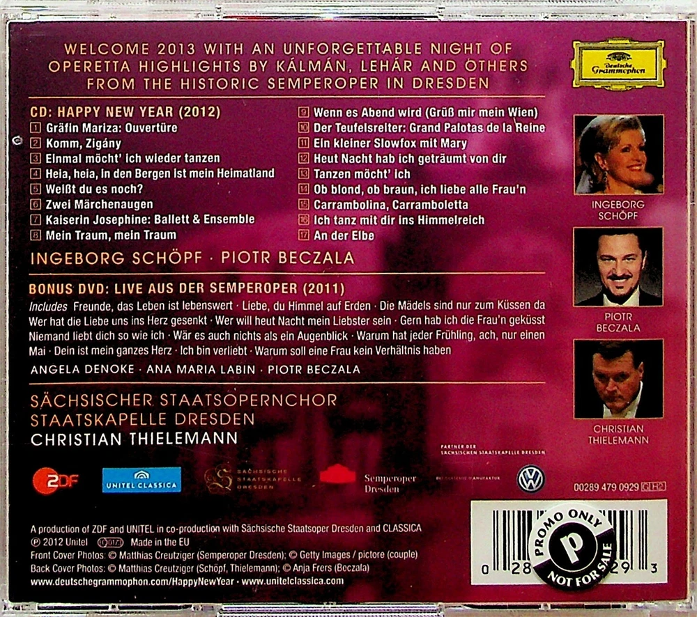 OUR REF - C 21147 New Years Eve-Live Concert -Semperoper CD & DVD-2013- Christian Thielmann (DG) CONDITION NOTES Disc Condition- Mint- Complete with Case and original insert & booklet. Small promo sticker & light wear on case POSTAGE DISCOUNTS- BUY MORE AND SAVE ON SHIPPING COSTS! THE FIRST ITEM IS FULL PRICE POSTAGE & EACH ADDITIONAL ITEM IS HALF PRICE POSTAGE*. THE 'FIRST' ITEM WILL BE THAT WITH THE HIGHEST POSTAGE COST IN ANY ORDER (*NOTE- SOME VINYL BOX SETS MAY BE EXCLUDED FROM THIS DEAL DEPENDING ON WEIGHT) PLEASE CONTACT US USING EBAY MESSAGES IF YOU HAVE ANY QUERIES BEFORE OR AFTER YOUR PURCHASE. WE WILL REPLY AS SOON AS POSSIBLE BUT MAY NOT ALWAYS BE ABLE TO RESPOND AT WEEKENDS. WE TAKE GREAT CARE IN OUR LISTINGS BUT IF ANY ITEM FALLS BELOW YOUR EXPECTATIONS THEN PLEASE CONTACT US & WE WILL BE GLAD TO HELP. Powered by SixBit's eCommerce Solution