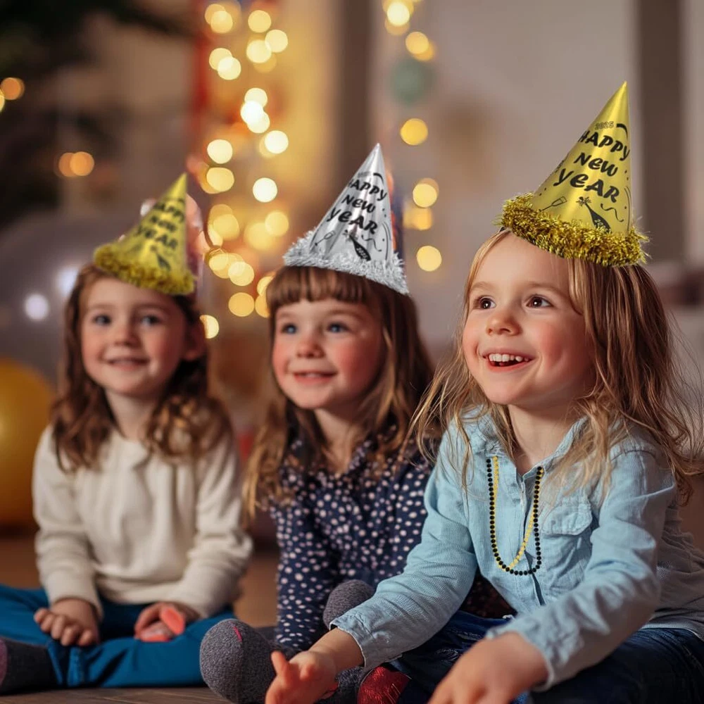 New Years Party Supplies for 100 Guests WHATS IN THE PACK - 50 hats, 50 glasses, 50 les, 50 nacklaces, 50 squakers, 50 blowouts, a foil happy new year banner, 2025 New years party backdrop and a new years party banner HIGH QUALTIY NEW YEAR BACKDROP - The new year backdrop in this pack is made of high quality fabric, which is thick, durable and well printed REAL FOIL - As you see from the picture, the banner is shinny and bright. It's not printed by ink. It's real foil GREAT BOX - All the stuffs are packed in a great box. What's more Different parts are individually packaged in different bags. You don't need to worry about there is a mass in the box 100% GUARANTEED AND CUSTOMER SERVICE - We're absolutely sure you'll love our product. If, for some reason, you are not satisfied with the kit, we provide 45-day money-back. Your satisfaction means the world to us. So feel free to contact us if you have any question