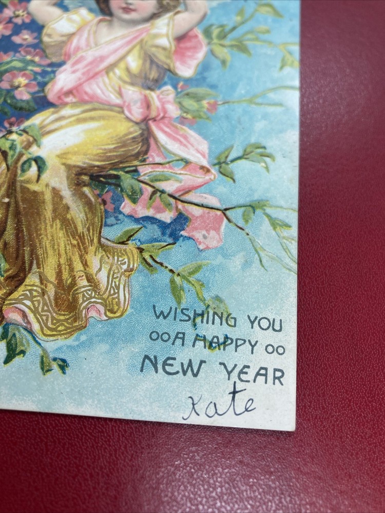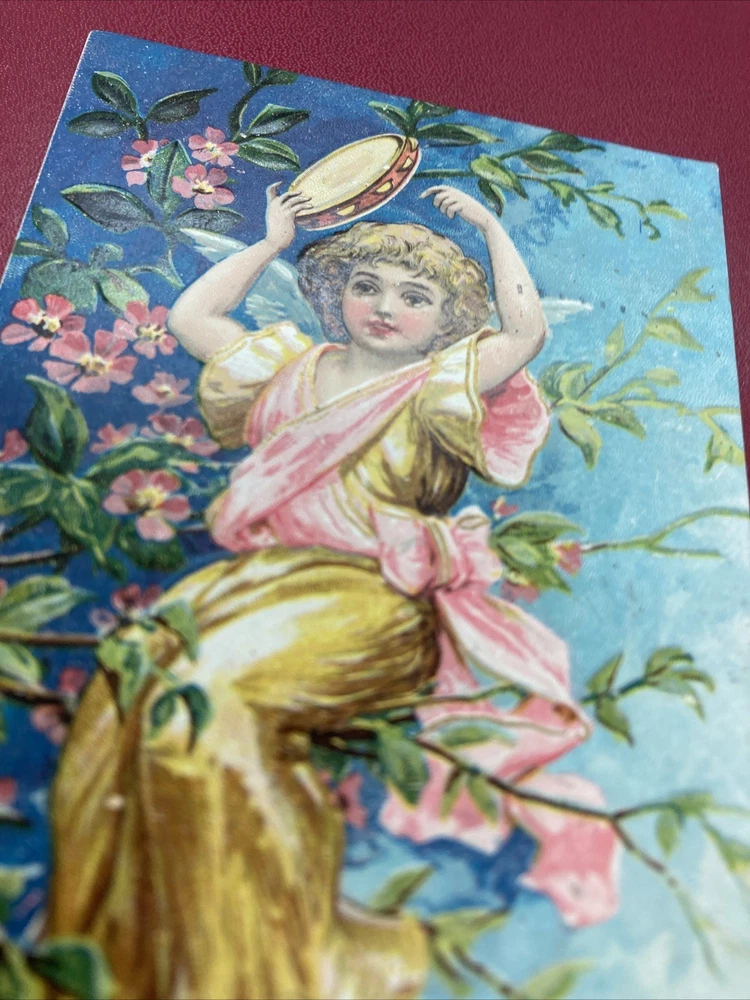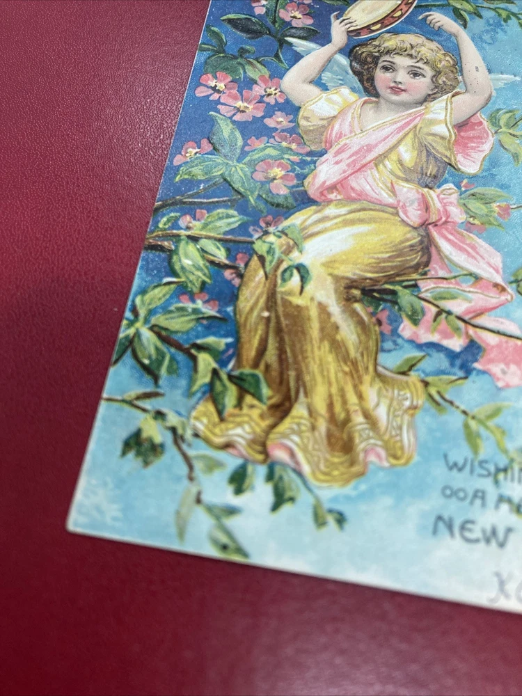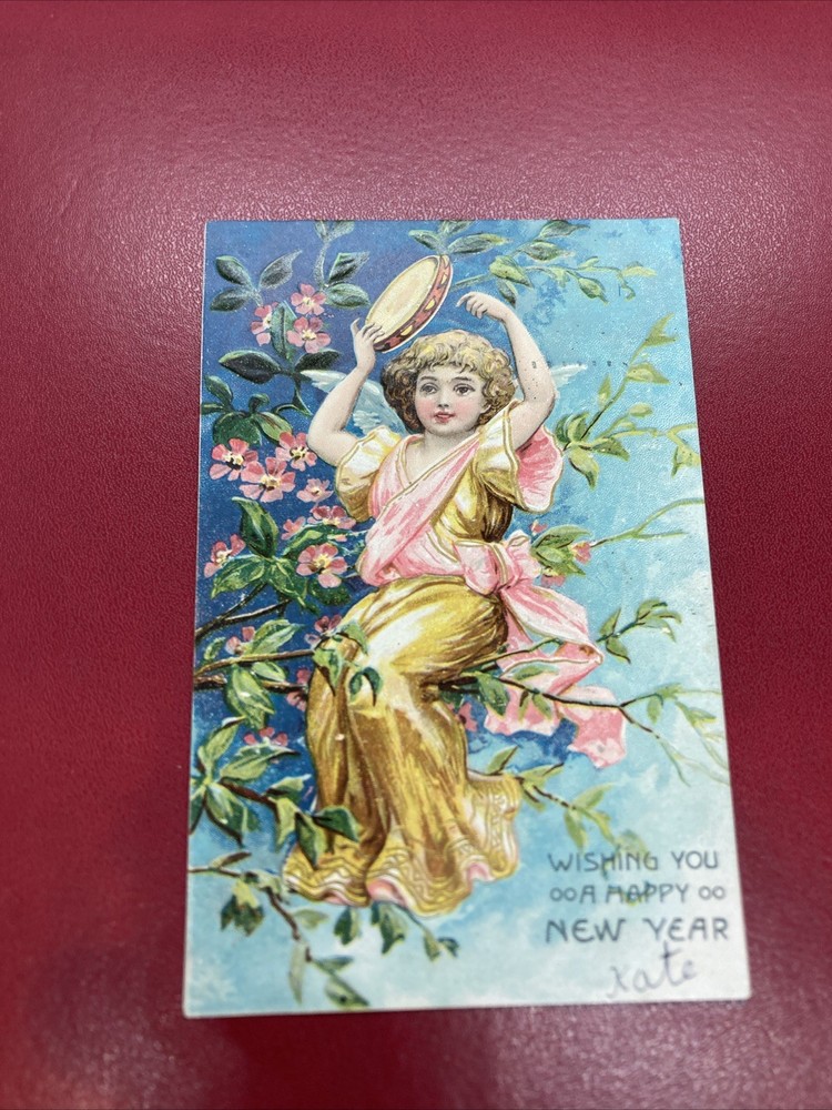 Artist:UnknownSize:Standard (5.5 x 3.5 in)Brand/Publisher:S. LangsdorfOriginal/Licensed Reprint:OriginalYear Manufactured:1907Occasion:New YearCustom Bundle:NoEra:Pre-War (Pre-1914)Theme:Art, Children & Infants, Fantasy, Greetings, Holiday, Angels, TambourineSubject:AngelType:Printed (Lithograph)Personalize:NoPostage Condition:PostedUnit of Sale:Single UnitSigned:NoMaterial:PaperCountry of Origin:GermanyTime Period Manufactured:1900-1919Number of Items in Set:1Features:Embossed, Undivided Back