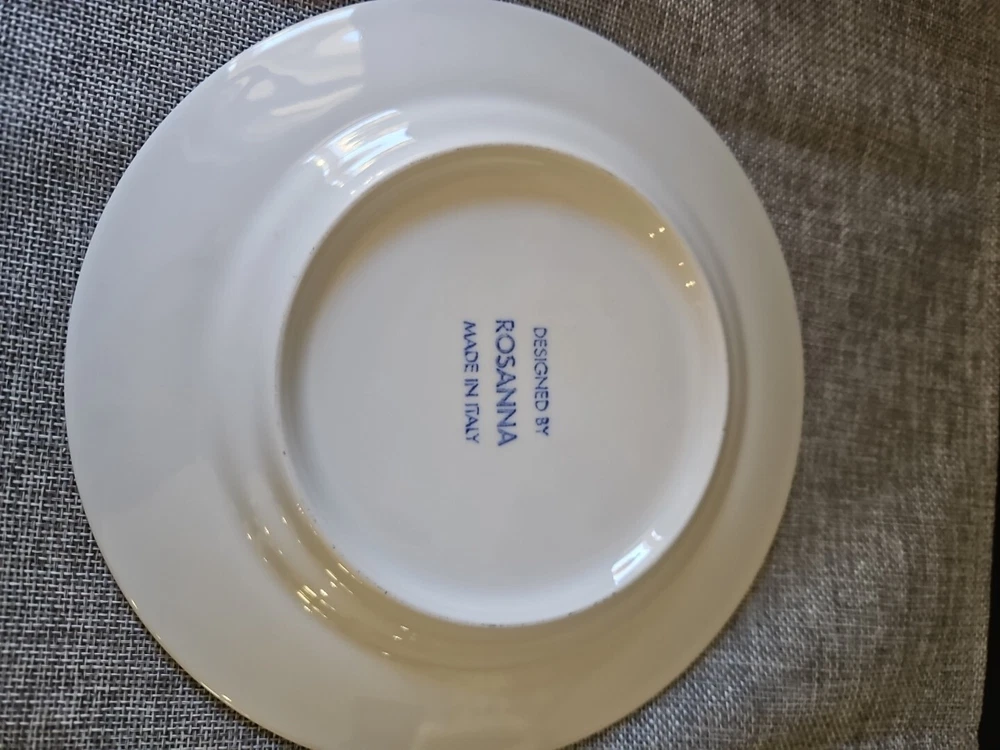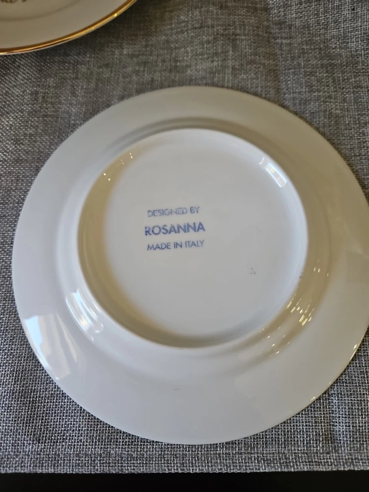 This set of three collector plates by Rosanna is a beautiful addition to any collection. The plates feature various patterns in vibrant multicolors, all on round 8-inch diameters. Made in Italy, these plates are a true representation of Italian culture and are perfect for all occasions. Whether you're displaying them in your home or using them to serve special dishes, these plates are sure to impress. Add them to your collection today! Years 1900, 1940, and 1950.