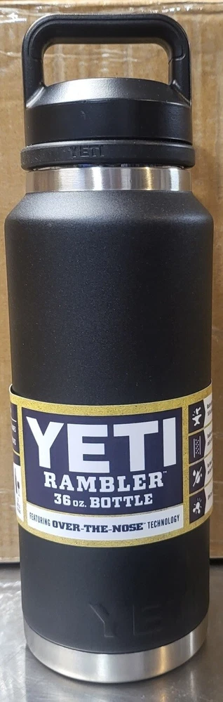 Country/Region of Manufacture: China Personalize: No Brand: Yeti Color: Black Theme: solid color Set Includes: Bottle Material: Metal, Stainless Steel Volume: 36 fl oz MPN: YRAMB36 UPC: 0410010304492 Type: Bottle Features: Insulated Top Type: Screw on lid with CHUG cap Model: Yeti Rambler gtin13: 0410010304492