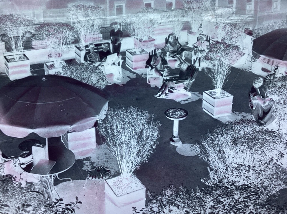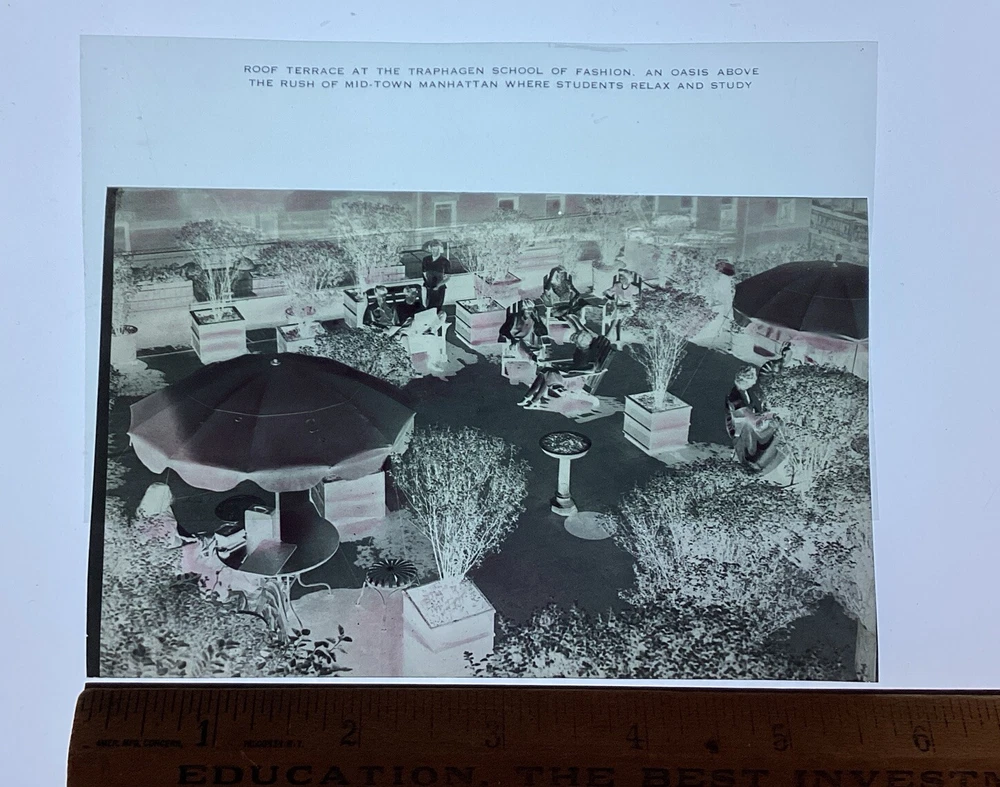 This item is a POSTCARD NEGATIVE The Traphagen School of Fashion Mid-Town Manhattan New York City, Roof-Top Terrace for Students Colored 3.5x5.5” sent with tracking @BP/X016