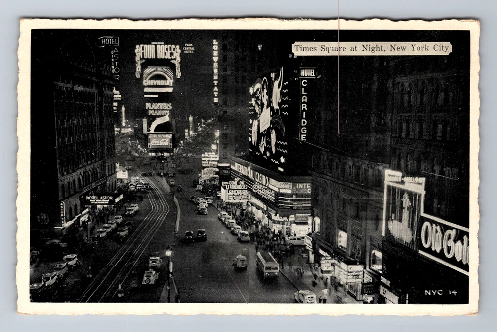 New York City NY, Aerial Times Square At Night, Souvenir, Vintage Postcard