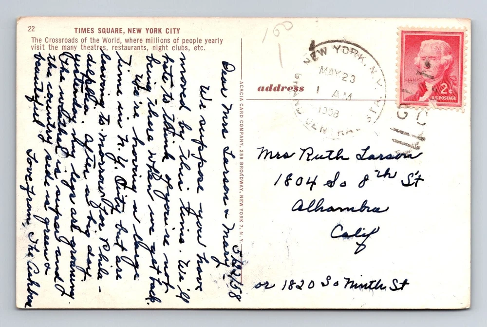 Type: Printed (Lithograph) City: New York City Country/Region of Manufacture: Unknown Theme: Cities & Towns Subject: Cities & Towns Country: USA Unit of Sale: Single Unit Region: New York Original/Licensed Reprint: Original Postage Condition: Posted Era: Vintage