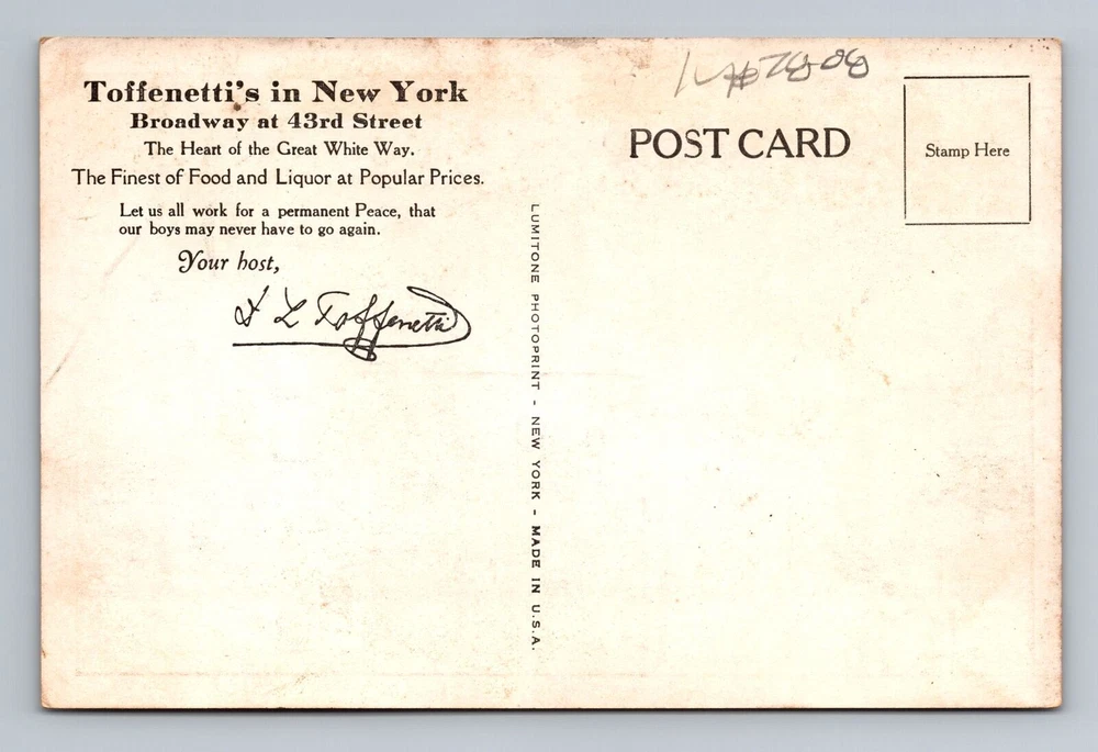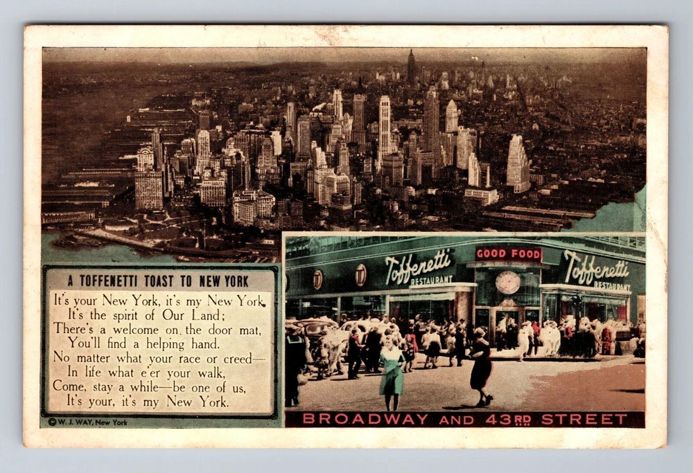 New York City NY, Aerial Toffenetti's, Souvenir, Vintage Postcard