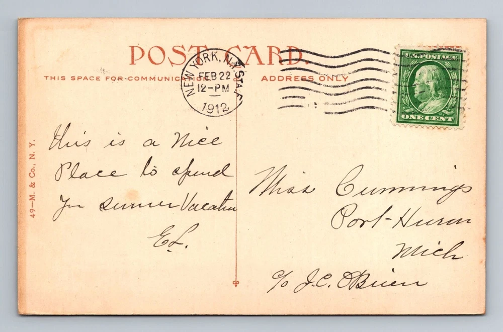 Country: USA Country/Region of Manufacture: Unknown Subject: Cities & Towns City: New York City Material: Paper Unit of Sale: Single Unit Era: Vintage Postage Condition: Posted Theme: Cities & Towns Region: New York Size: Standard (5.5 x 3.5 in) Original/Licensed Reprint: Original Type: Printed (Lithograph)